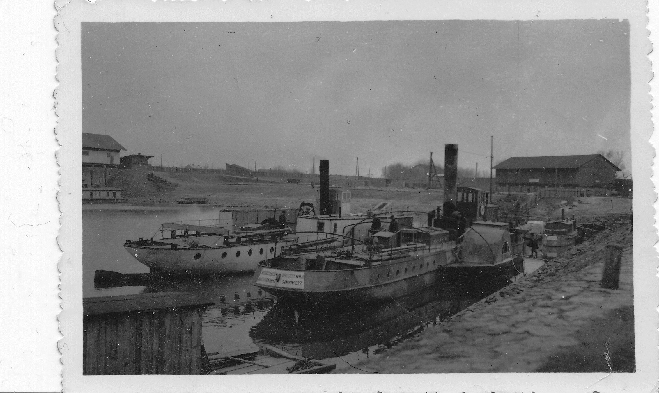 Niestety zdjęcia, które kupiłem i tu zamieszczam na ogół nie są dobrze opisane. Co do holownika, to mało widoczna nazwa na tamborze wygląd jak Jaworzno. Co do wraku też zastanawiałem się, czy to dolna Wisła czy raczej rzeka na Polesiu. Komin jest dziwaczny - może to jakaś wojenna modyfikacja, któraś z jednostek spod czerwonej bandery?