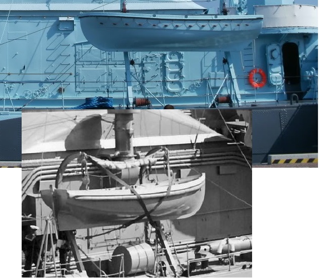 Miałem na myśli raczej przypadkowe potknięcie, poślizgnięcie, lub podobny przypadek przechodzącego lub stojącego obok wlotu marynarza. Dolna krawędź otworu czerpni znajdowała się na wysokości trochę, ponad 60cm, więc jak by wywinął orła do tyłu, to wpadł by jak amen w pacierzu do kotłowni. Poza tym; klapy były wtedy jeszcze dzielone na 4 ćwiartki. Dwie górne podnoszone były na linach z wysięgników (wsporników) po obu stronach turbowentylatora przy kominie, a dolne ?. Zawiasy były na dole, więc klapy musiałyby być kładzione po odchyleniu na pokład. Jakoś tego nie zauważyłem na żadnym zdjęciu. Więc pewnie wysuwano je z zawiasów i gdzieś składowano. Może właśnie w tej wnęce wentylacyjnej. Wtedy musiał by tam być jakiś stelaż podłogowy, krata, lub coś podobnego.