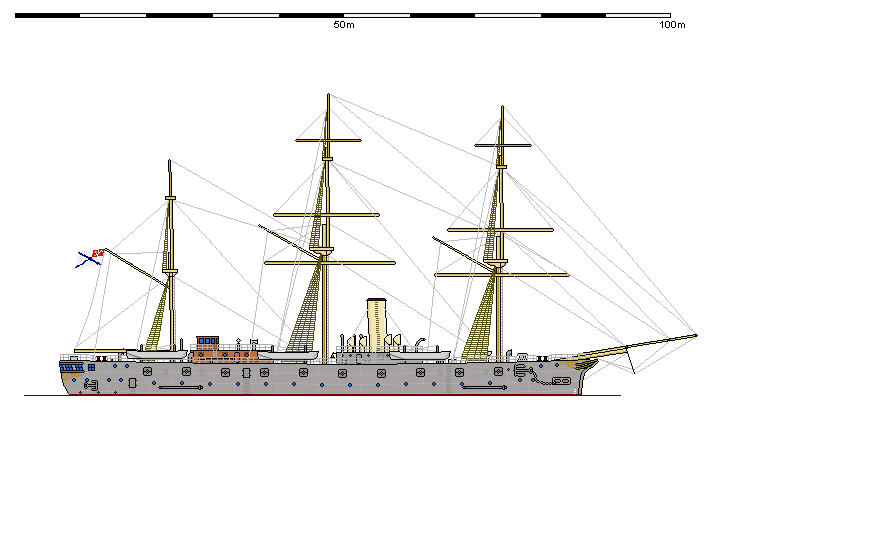 - Pancernik obrony wybrzeża z 1875 r., 3247 ton, 4x229, 13.3 w., pb254, pag254, pp25