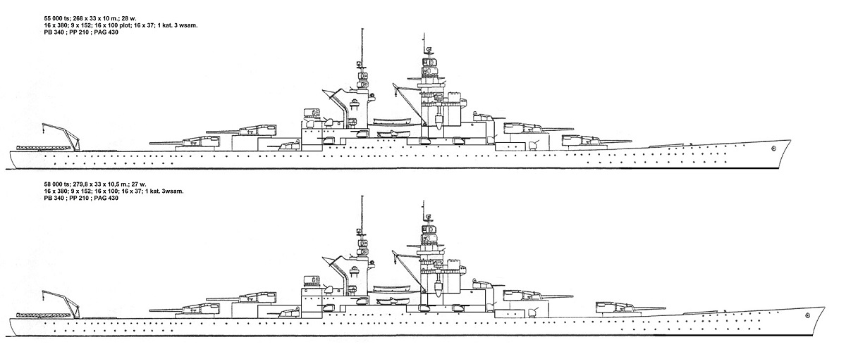 Spotkałem się w sieci z danymi i rysunkami Alsace. Próbowałem jak mogłem, ale nigdy nie udało mi się stworzenie wersji rozwojowej Richelieu o długości 251 metrów, czyli trochę ponad 3 metry dłuższej od Ryśka. Można Alsace (wersję super też) skrócić, ale wtedy wyposażenie lotnicze idzie w diabły, a zysk jest i tak niezbyt wielki.