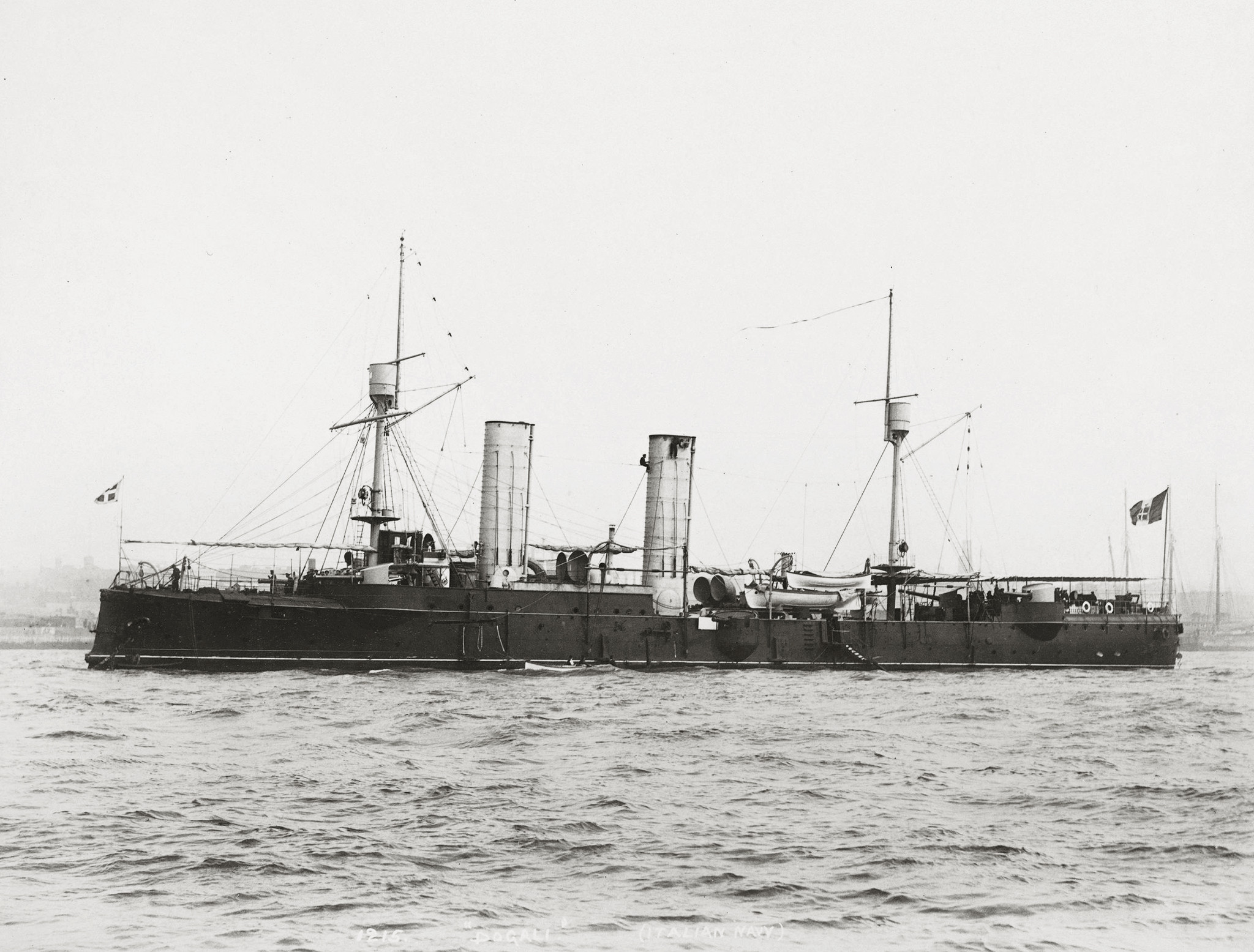 Włoski krążownik Piemonte. Konstrukcja Armstronga. Wodowany w 1888 roku, do służby wszedł rok później. Wyporność ponad 2440 ton, prędkość ok. 22 węzły. Początkowo uzbrojony w 6x152/40 QF i 6x120/40 QF oraz kilkanaście mniejszych i 2 wt. Okazalo się jednak w praktyce, że uzbrojenie jest zbyt ciężkie i ma negatywny wpływ na stateczność okrętu, więc w 2 lata po wprowadzeniu go do służby 4 armaty 152mm zastąpiono armatami 120 mm (teraz miał 2x152 i 10x120). W 1913 armaty 152mm mu w ogóle zdjęto. Wycofany ze służby zaraz po zakończeniu I wojny. Uczestniczył, obok działań w czasie I wojny, także w wojnie z Turcją (i to całkiem aktywnie m.in. uczestnicząc w bitwie pod Kunfuzą na M. Czerwonym, podczas której Włosi zniszczyli kilka tureckich kanonierek).