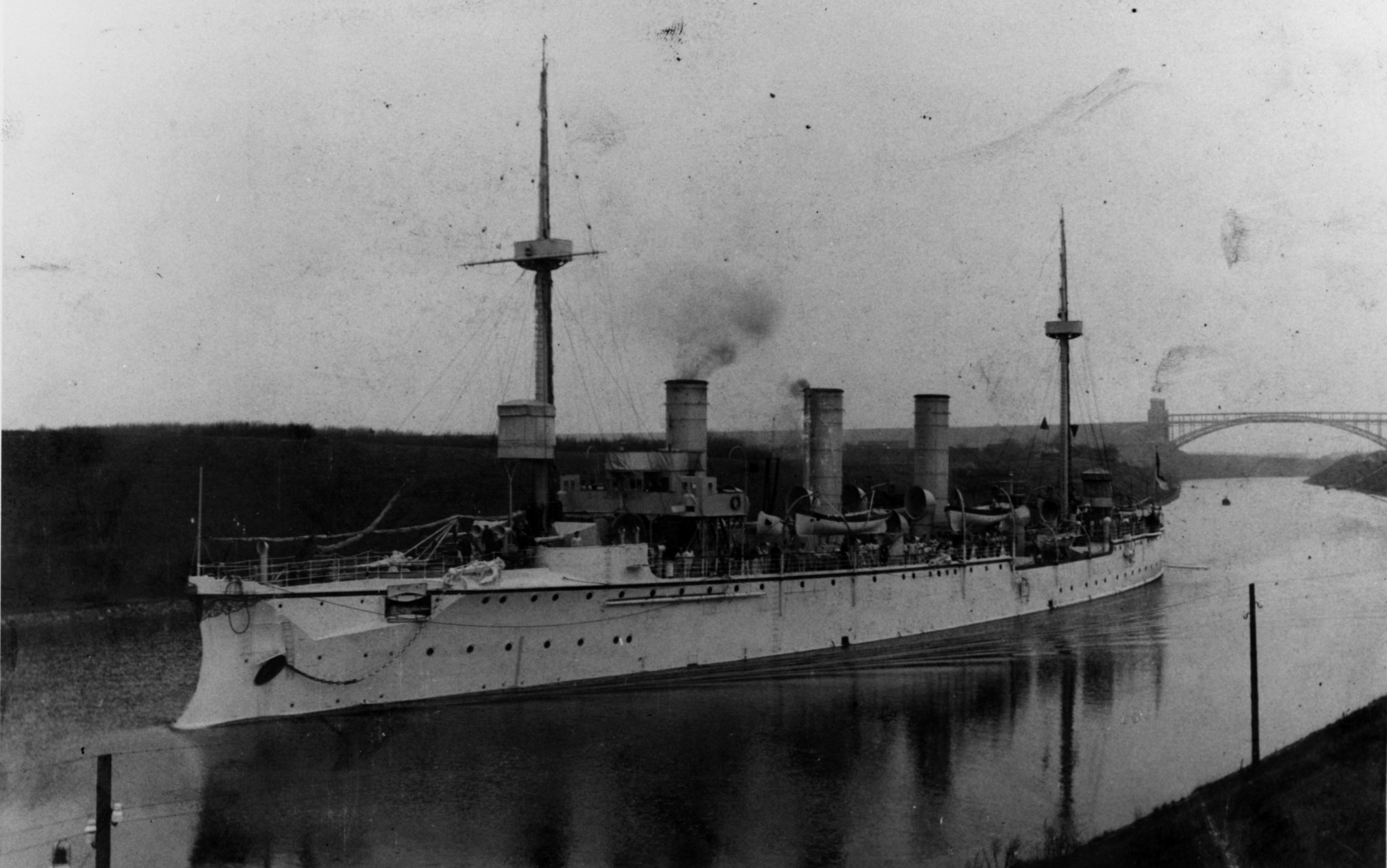 Niemiecki krążownik Gefion. Zwodowany w 1893 roku, w służbie - 1894. Wyporność niecałe 3750 ton, prędkość 19 węzłów (na próbach przekroczył 20 węzłów). Wymiary: 109,2 x 13,2 x 6,5 m. Uzbrojenie: początkowo miał być uzbrojony w armaty 150mm, ostatecznie dostał 10x105 QF i kilka małych oraz 2 wt. Zmodernizowany w latach 1901-1904. W praktyce wycofany ze służby w 1916 roku, po wojnie przekazany na złom.