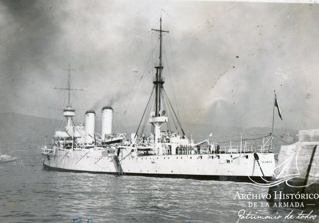 Chilijczycy mieli w składzie swej floty jeszcze jeden krążownik z "rodziny Armstronga" o której mowa - Blanco Encalada. Zbudowany został wcześniej niż Chacabuco - zwodowano go w 1893 roku, w służbie od roku następnego. Wyporność ok. 4570 ton, prędkość niecałe 23 węzły. Wymiary: 112,8 x 14,2 x 5,6 m. Uzbrojenie: 2x203/45 QF, 10x152/40 QF, ponad 20 lekkich i 5 wt. W 1920 roku został przebudowany na okręt szkolny ze zredukowanym uzbrojenie. Wycofano go ze służby po II wojnie.