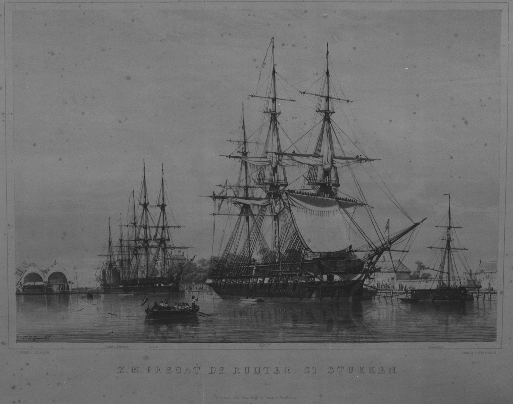 Odnośnie ilustracji przedstawiającej okręt „De Ruyter” w postaci fregaty, to dzięki badaniom pana Karola Budniaka mogę podać garść dodatkowych informacji. Po pierwsze, nie jest to zdjęcie, tylko podkolorowana litografia. Autor: J. C. Greive jr. Po drugie, na obrazie portu we Vlissingen (dla Anglików: Flushing) widzimy od lewej (pomijając jednostki z krytych doków): okręt parowo-żaglowy drugiej klasy „Citadel van Antwerpen”, fregatę żaglową „Sambre” (tu już tylko jako koszary), fregatę „De Ruyter” i kanonierką żaglową. O tych ostatnich pan Karol pisze fantastyczną pracę naukową.