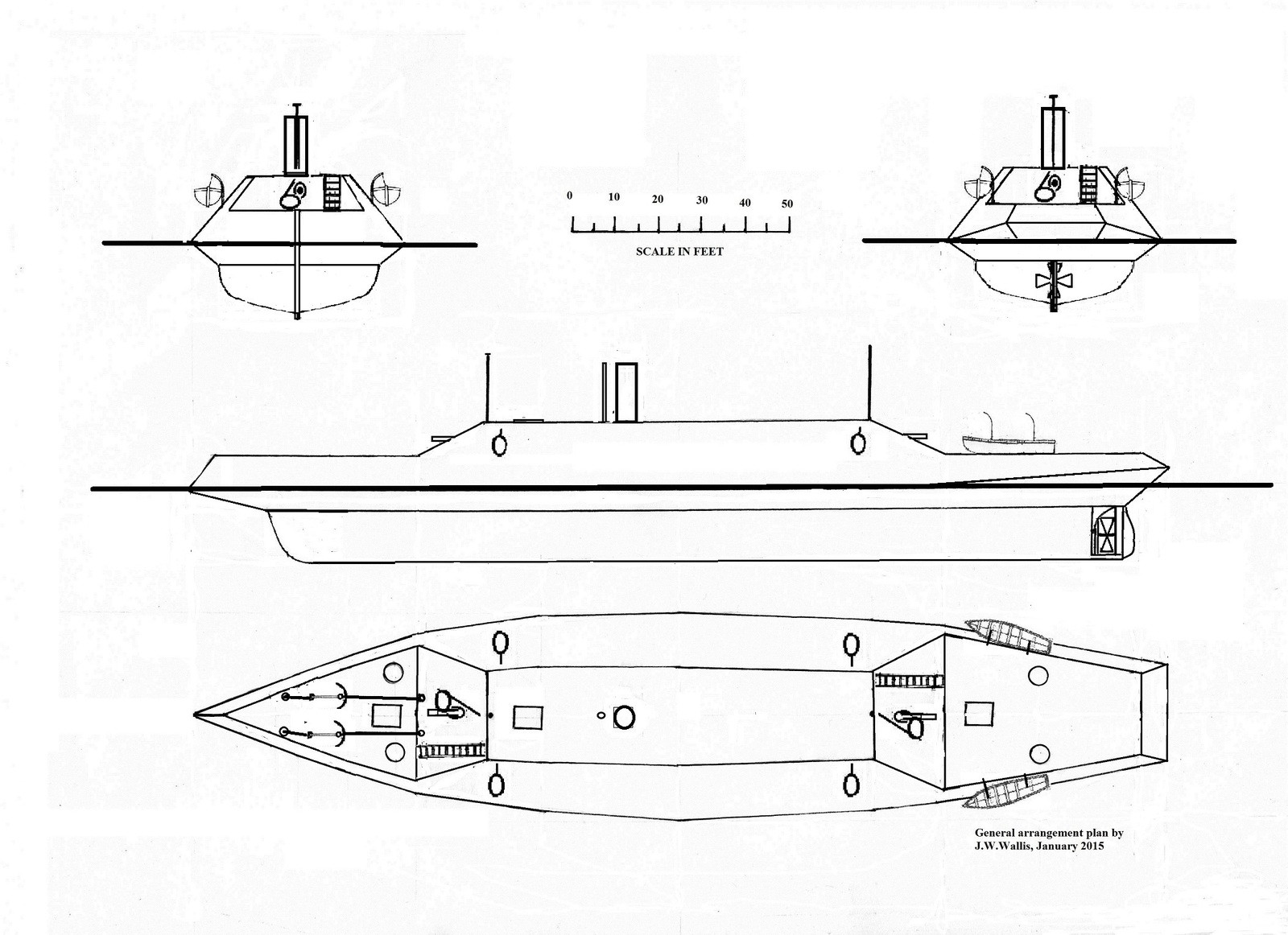 Trochę z innej beczki, bo o holenderskim pancerniku kazamatowym De Ruyter. Budowę tego okrętu rozpoczęto na początku lat 30 XIX wieku jako 74-dzialowego okrętu liniowego, w 1853 roku zwodowano go już jednak jako 54-działową fregatę (żaglową). W 1860 przebudowano na fregatę parową (45-działową), by w trzy lata później przebudować go po raz kolejny na pancernik kazamatowy (wzorem konfederackiej Virginii - kadłub fregaty "ostrzyżono" prawie do linii wodnej i na nim zbudowano pancerną kazamatę). Przebudowa okazała się nieudana - ciężar kazamaty okazał się zbyt duży na osłabiony "strzyżeniem" drewniany kadłub - i okręt szybko wycofano ze służby. Ale sama konstrukcja, mało znana, wydaje się być ciekawa - więc zamieszczam o niej informację. Nie mam zdjęcia, a jedynie ilustrację modelu i zdjęcie De Ruyter jako fregaty, ale, jak się nie ma co się lubi...