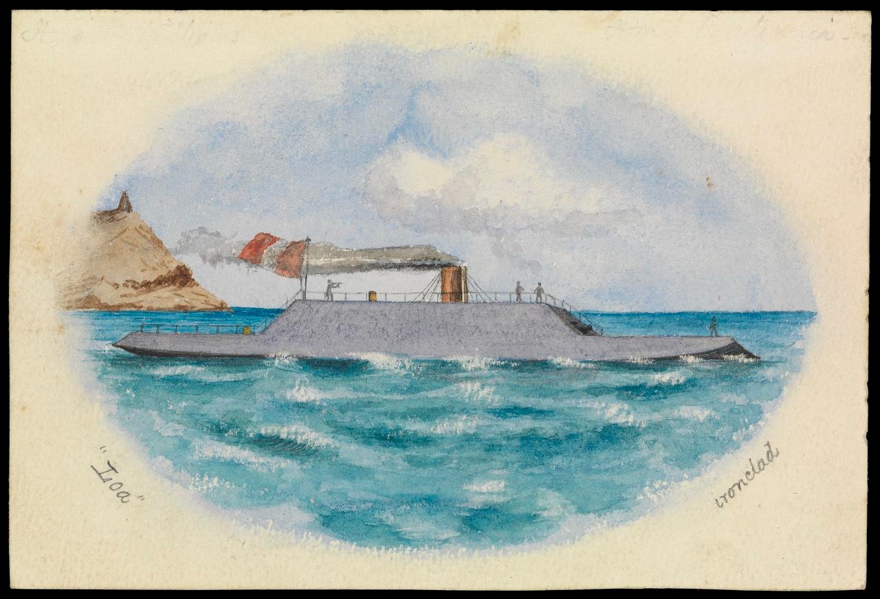 Mało znany okręt - peruwiański pancernik kazamatowy Loa, przebudowany z kanonierki (a w zasadzie parowca przebudowanego na kanonierkę o tej samej nazwie, zwodowanej w 1854 roku). Na pancernik okręt ten przebudowany został w Calla w 1864 roku (prace zaczęto wiosną, zakończono pod koniec roku). Tonaż 648 ton (bm) (choć spotkać też można wartość 575 ton). Prędkośc ok. 7 węzłów. Wymiary: 50,3 x 7,9 x 6,4 m. Uzbrojony w 1x178 ML, 1x68 f SB. Kazamata opancerzona była płytami grubości 8 cm. Loa uczestniczył w bitwie z eskadrą hiszpańską, która 2 maja 1866 roku ostrzelała Callao. Wycofany ze służby w połowie lat 70.