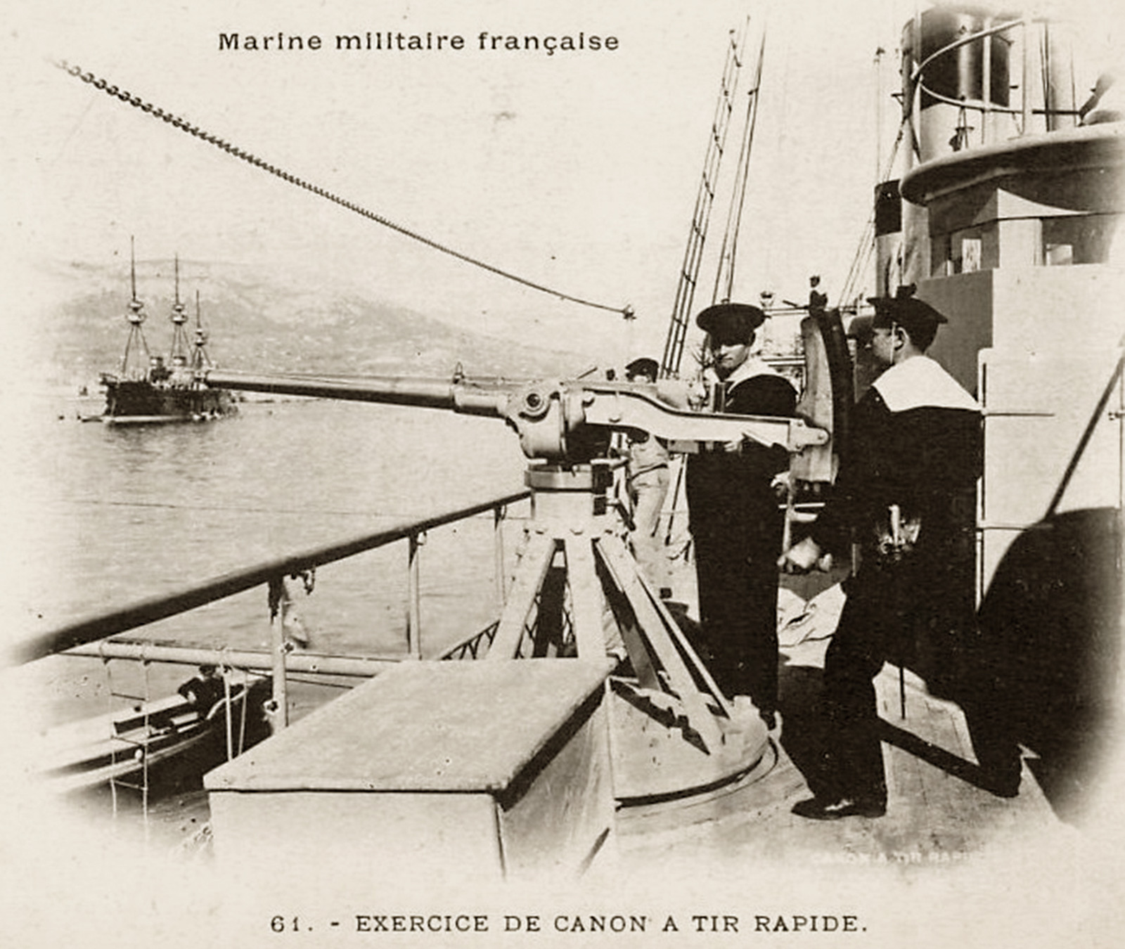 47 mm armata szybkostrzelna Hotchkissa (dł. lufy 40 kalibrów). Bardzo popularna broń produkowana w różnych krajach i różnych odmianach. Tu na okrętach francuskich.