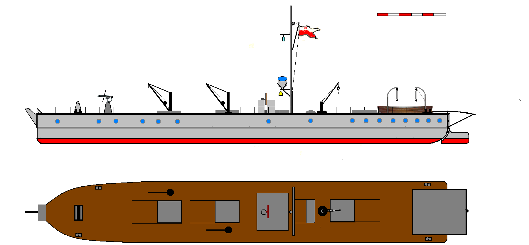 Ponawiam pytanie, z jakiego okresu jest statek na rysunku. Jeżeli przed przebudową, to trzeba zmienić dziób, dodać falszburtę i zmienić kabestan.