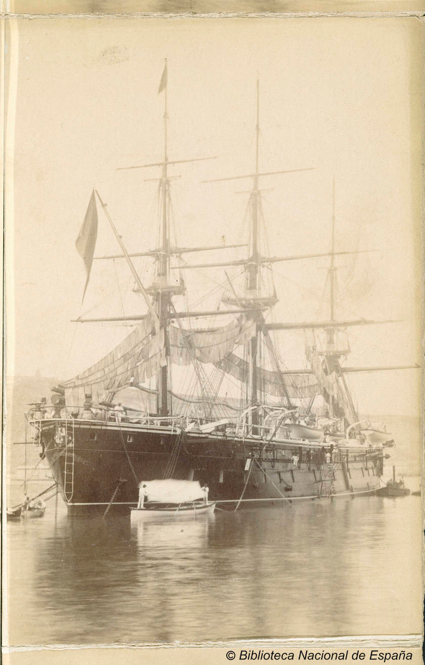 Hiszpański pancernik Numancia (pierwszy pancernik hiszpański i pierwszy pancernik, który opłynął kulę ziemską). Budowy francuskiej. miał kadłub żelazny. Wyporność ok. 7300 ton, prędkość 12,7 węzłów. Początkowo uzbrojony w 34 armaty 68f SB i 2x160 ML. Wziął udział w działaniach wojennych przeciw Peru i Chile (m.in. w bombardowaniu Valparaiso i Callao). Po powrocie do kraju przezbrojony (1867): 6x229 ML, 3x203 ML, 8x160 ML. Pancerz burtowy - 10-13 cm, bateria - 12 cm.