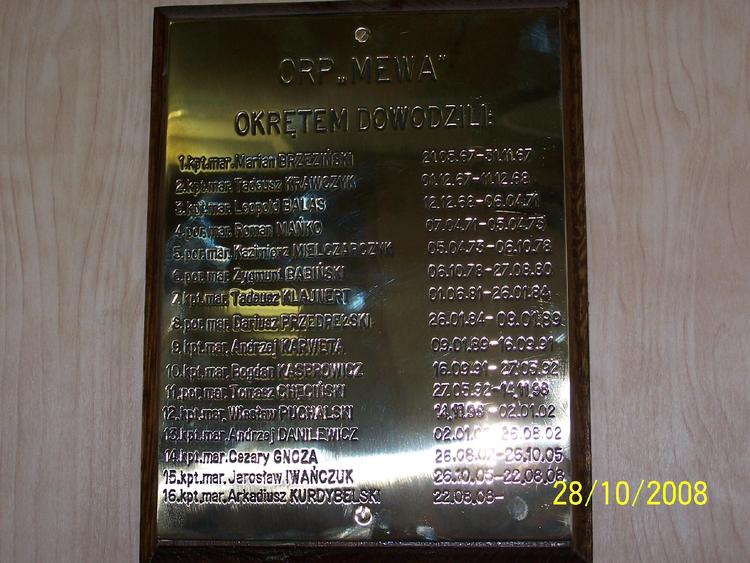 WIZYTA JANA PAWŁA II NA POKŁADZIE ORP " MEWA " - 1987 r. Podczas tej pielgrzymki do Polski JP II spędził dwa dni na pokładzie okretu . Pierwszego dnia przepłynął z Gdyni do Sopotu , a następnego dnia z Sopotu na Westerplatte , gdzie odprawił mszę dla Młodzieży Świata i na Motławę pod Zieloną Bramę . Na czas wizyty zdemontowano armatę dziobową i ustawiono fotele lotnicze . Dowódcą okrętu był wówczas kpt. mar. Dariusz Przedpełski . Drugim okrętem przygotowanym identycznie tak jak "Mewa" / na wypadek problemów technicznych / był ORP "Albatros" .