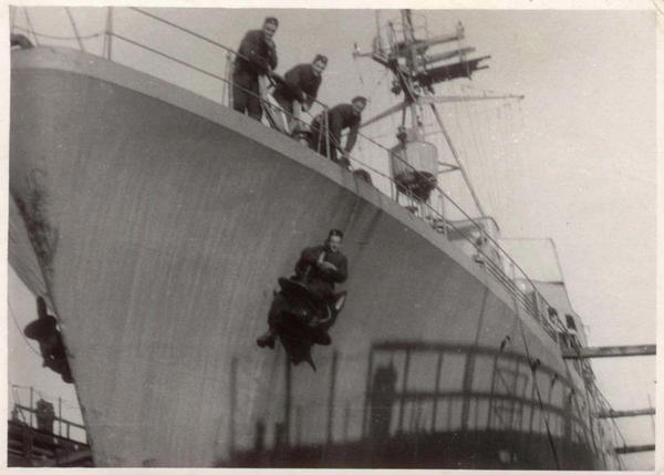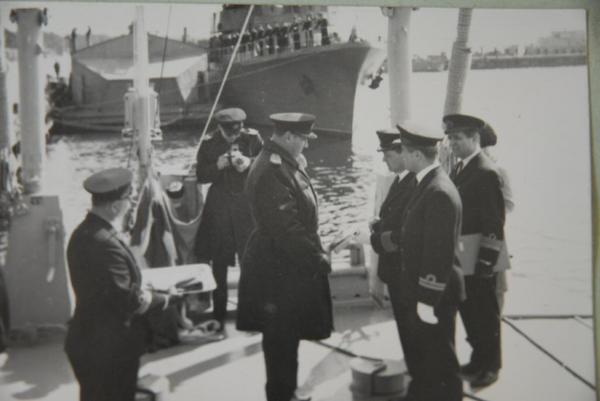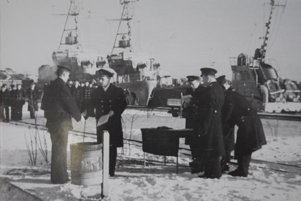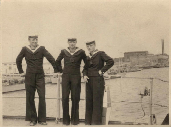 Od lewej - ?, st.bsm Szmagliński, por. mar. Modzelewski