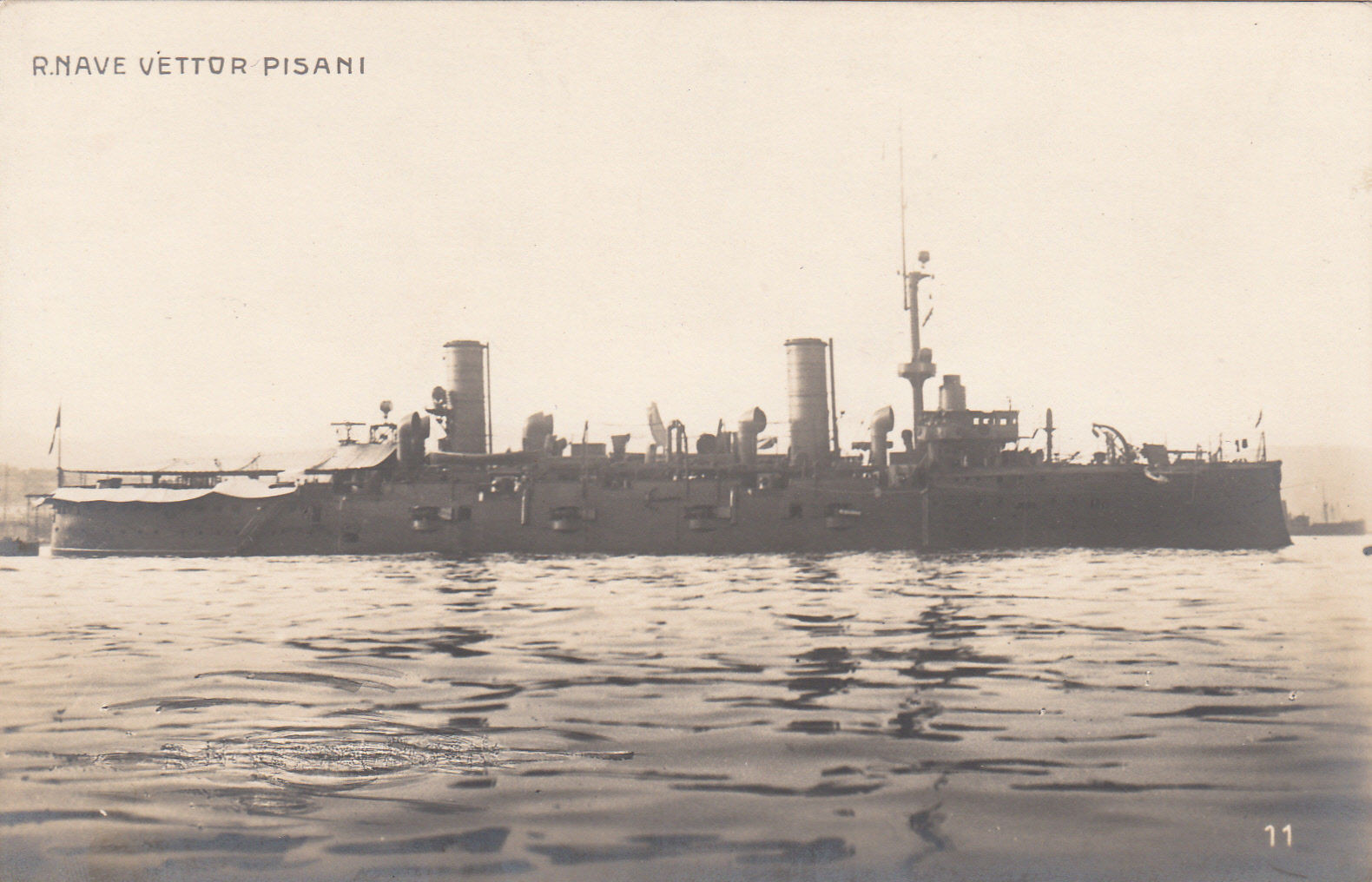 Włoskie krążowniki pancerne typu Vettor Pisani. Wcześniej zamieściłem zdjęcia argentyńskich krążowników pancernych typu Garibaldi, zbudowanych we Włoszech. Właśnie na jednostkach typu Pisani były one wzorowane (stanowiły ich rozwinięcie), podobnie zresztą, jak analogiczne okręty zbudowane później dla Hiszpanii, Włoch i Japonii. Zbudowano w sumie dwa okręty tego typu, obok Vettor Pisani także Carlo Alberto. Pierwszy wodowano w 1895 roku, drugi w 1896. Do służby weszły kolejno w 1899 i 1898 roku. Wyporność od ok. 6600 ton (Pisani) do 6400 ton (Carlo Alberto). Prędkość ok. 19 węzłów. Uzbrojenie 12x152/40 QF, 4x120/40 QF, ponad 20 małych i 4 wt (Carlo Alberto miał 6x120 QF). Bardzo dobrze opancerzone. Grubość pancerza burtowego nie przekraczała 15 cm, ale za to pokrywał on znaczną powierzchnię burt.
