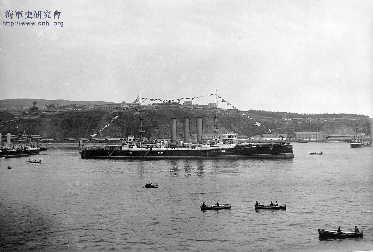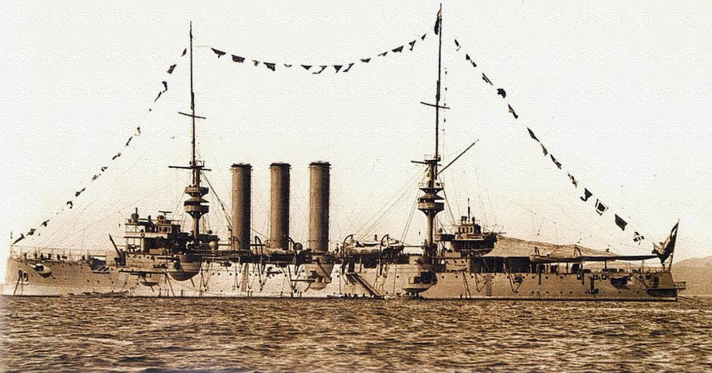 Rosyjski krążownik pancerny Gromoboj. Okręt bardzo podobny do Rossiji, w praktyce pół-siostrzany (choć często zalicza się go do odrębnego typu). Wyporność 13220 ton, prędkość 20 węzłów. Wymiary: 146,6 x 20,9 x 8,5 m. Uzbrojenie podobne do Rossiji: 4x203/45 QF, 16x152/45 QF, 24x75 QF i kilka małych 47-37 mm oraz 4 wt. Na przełomie 1904/1905 został przezbrojony tak samo jak Rossija, później w 1915 także. Uczestniczył w wojnie z Japonią. Uszkodzony w bitwie pod Ulsan, później odniósł także uszkodzenia po wejściu na mieliznę i w maju 1905 po wejściu na japońską minę. Podczas I wojny - na Bałtyku. Wycofany razem z Rossiją na początku lat 20.
