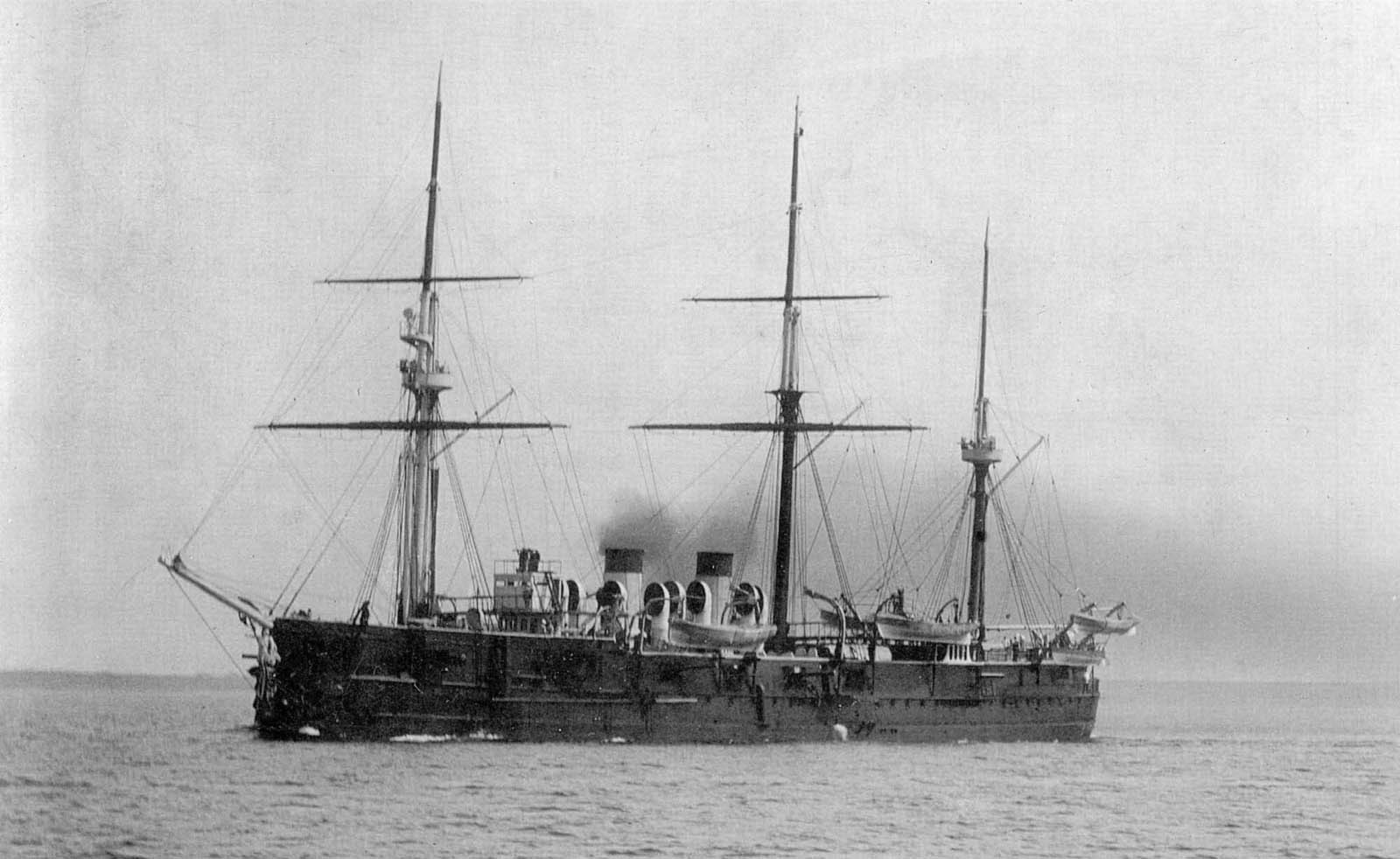Zastanawiałem się, czy ten okręt zamieścić w temacie o krążownikach pancernych, ale jednak pancerz burtowy miał i był to duży krążownik, więc zamieściłem - chilijski krążownik pancerny Esmeralda (trzeci okręt o tej nazwie). Wodowany w 1894 roku w Wielka Brytania (konstrukcja Armstronga). Wyporność 7000 ton, prędkość ponad 22 węzły. Wymiary: 132,9 x 16,2 x 6,2 m. Uzbrojenie: 2x203/40 QF, 16x152/40 QF, kilkanaście małych, 3 wt. Pancerz burtowy ograniczał się do stosunkowo krótkiego pasa na śródokręciu grubości 152 mm (poza tym miał wypukły pokład pancerny o grubości do 51 mm). Wycofany ze służby pod koniec lat 20.