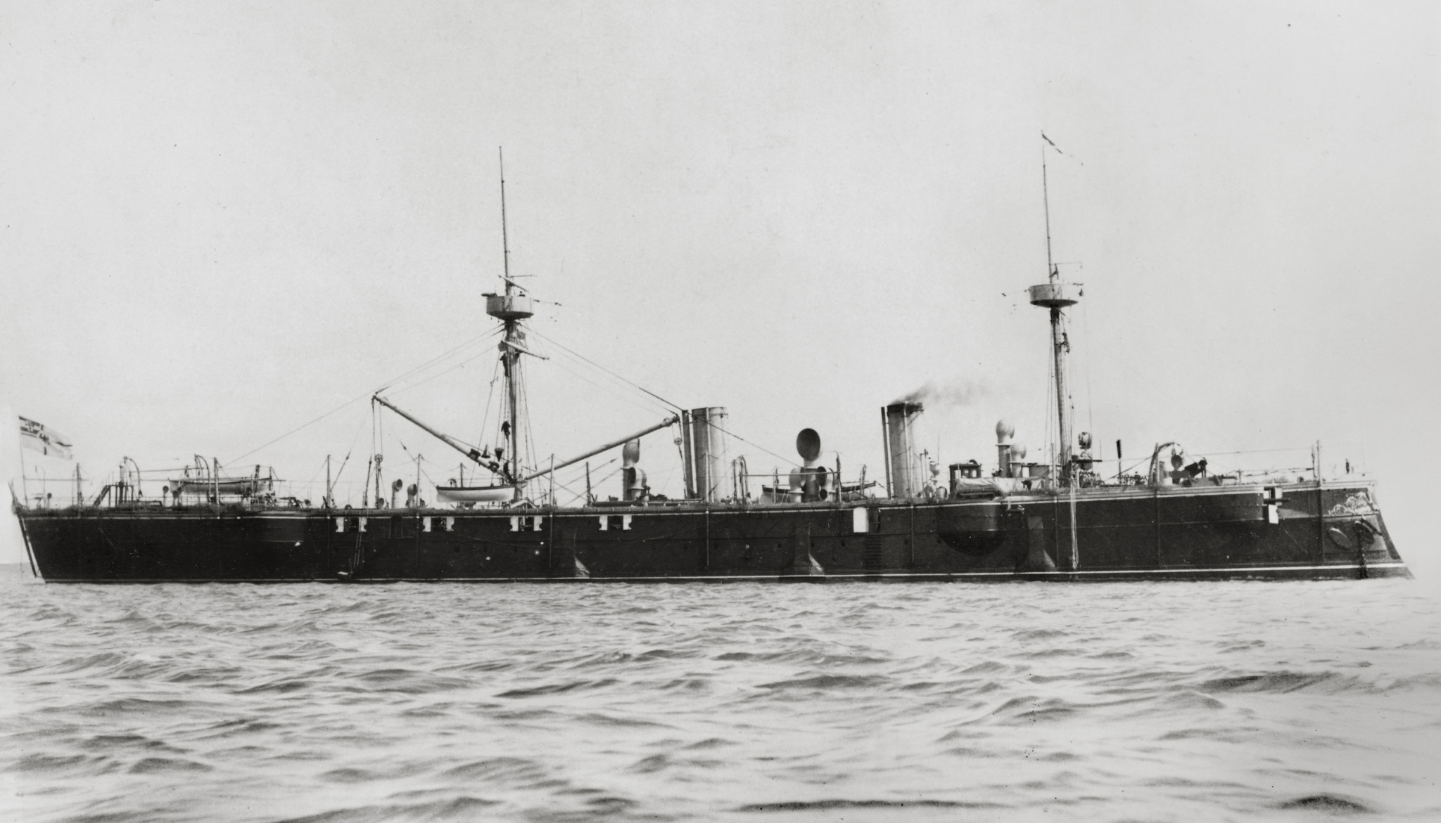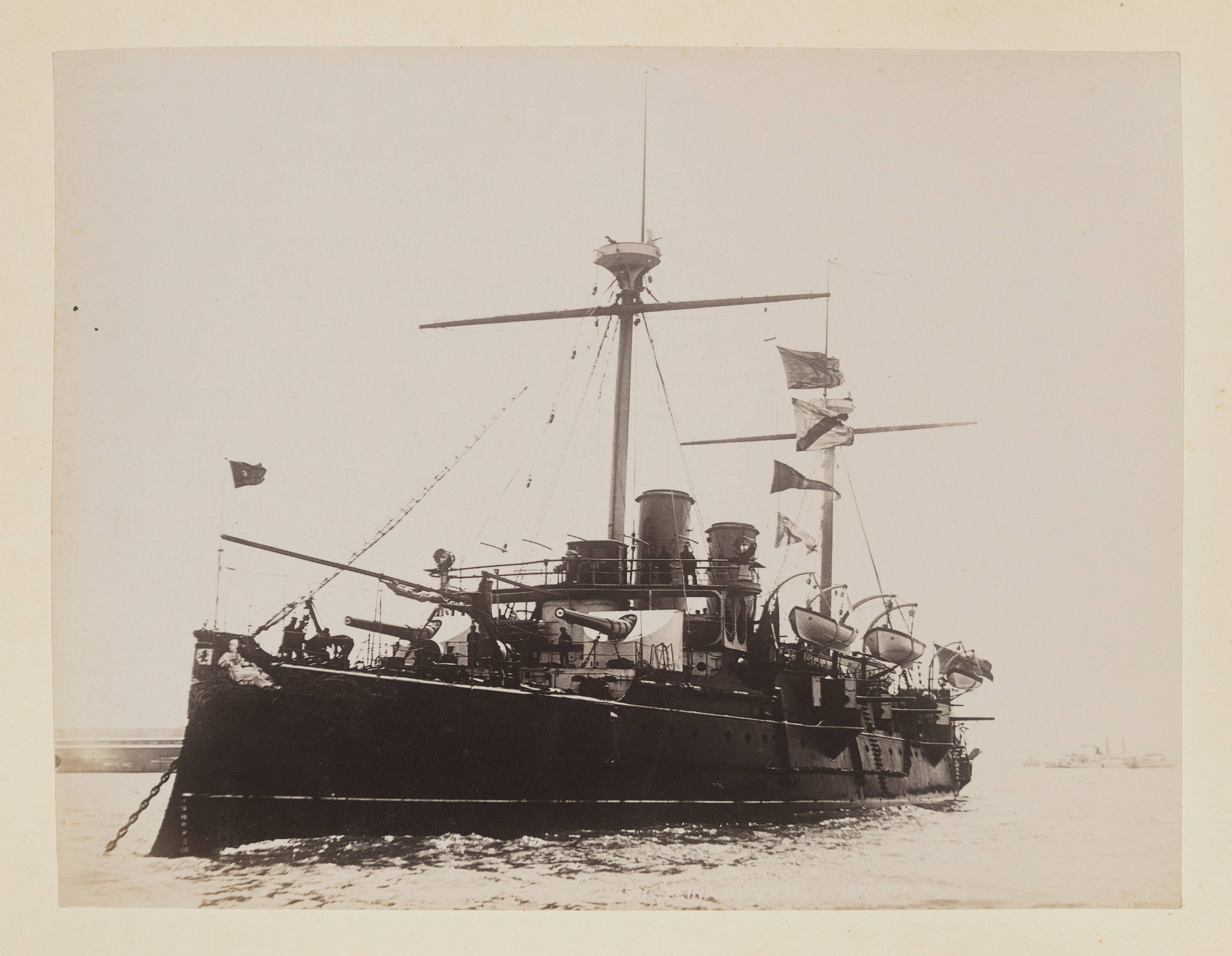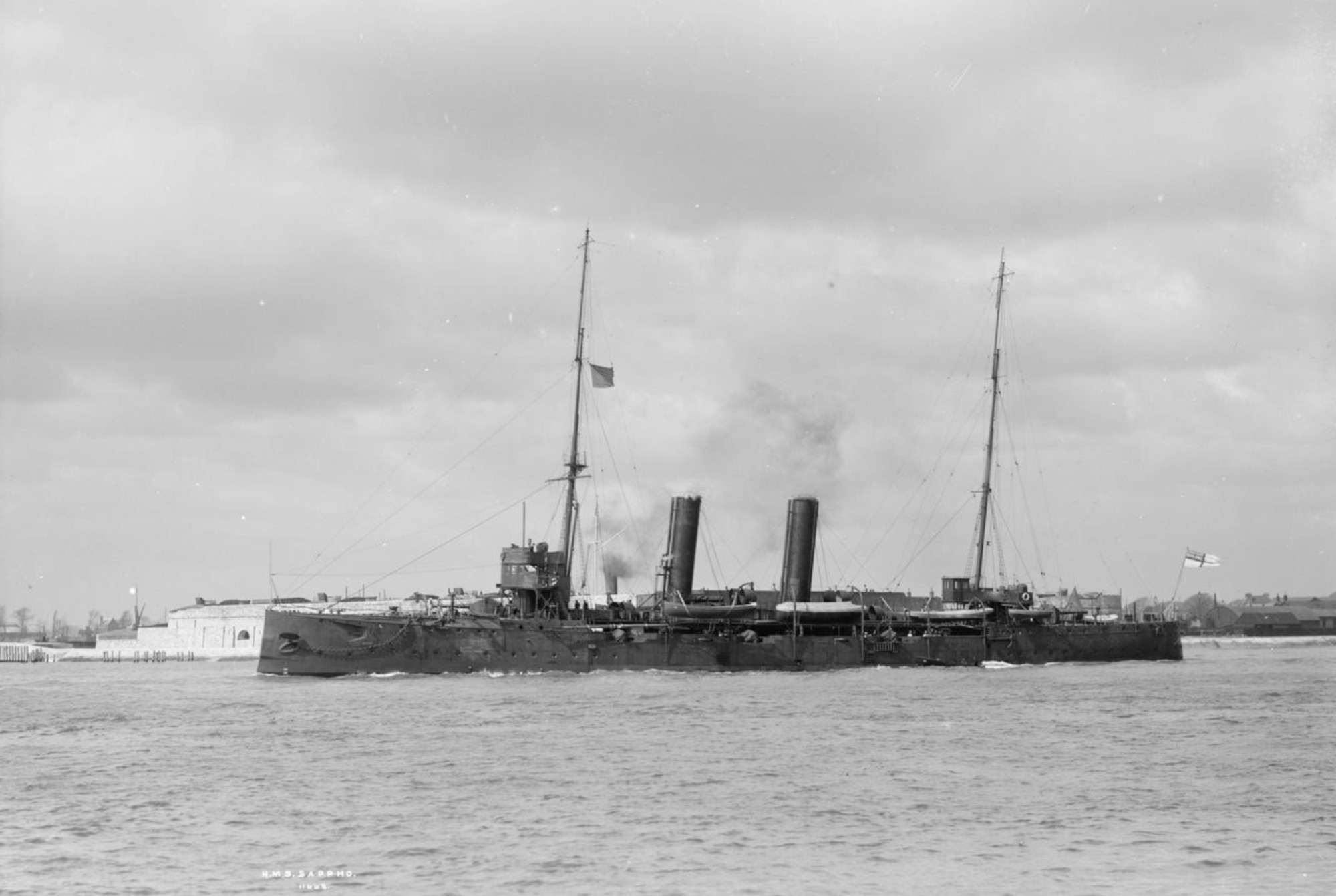 Holenderski krążownik Koningin Wilhelmina der Nederlanden. Zwodowany w 1892 roku. Jednostka nietypowa, przeznaczona do służby w koloniach, uzbrojona w relatywnie duże armaty (trochę jako taki "pancernopokładowy pancernik obrony wybrzeża"). Wyporność 4530 ton, prędkość 16 węzłów. Uzbrojenie: 1x280/30 BL, 1x210/35 BL, 2x170/35 BL, 4x75 QF, kilkanaście małych, 4 wt. Okręt miał tylko wypukły pokład pancerny (do 75 mm), ale wieża i barbeta były opancerzone płytami grubości do 28 cm.
