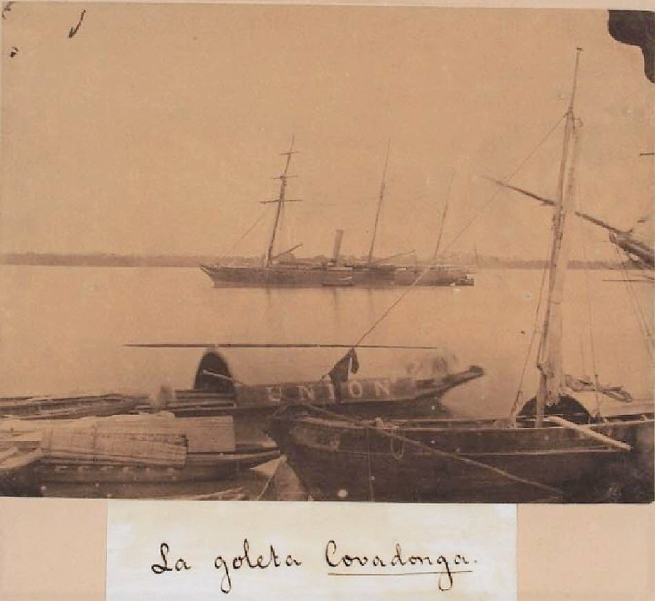 Chilijska kanonierka Covadonga. Zbudowana jako jednostka hiszpańska (slup, kanonierka), podczas konfliktu Hiszpanii z Chile i Peru, w listopadzie 1865 roku, została zdobyta koło Papudo przez korwetę Esmeralda i wcielona w skład floty chilijskiej pod nie zmienioną nazwą. Uczestniczyła w parę miesięcy później w starciu pod Abtao. W 1879 roku wzięła udział w wojnie z Peru i Boliwią. Pomimo leciwego wieku aktywnie uczestniczyła w działaniach odznaczając się w bitwie pod Iquique (ścigając ją, peruwiański pancernik Independencia wpadł na skały i został utracony). W październiku 1880 roku, podczas blokady Callao, została zniszczona koło Chancay przez peruwiański brander (czy jak kto woli statek-pułapkę).