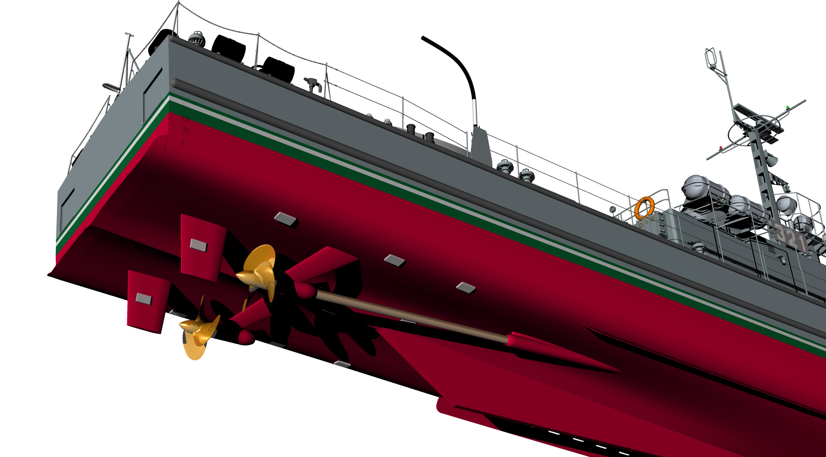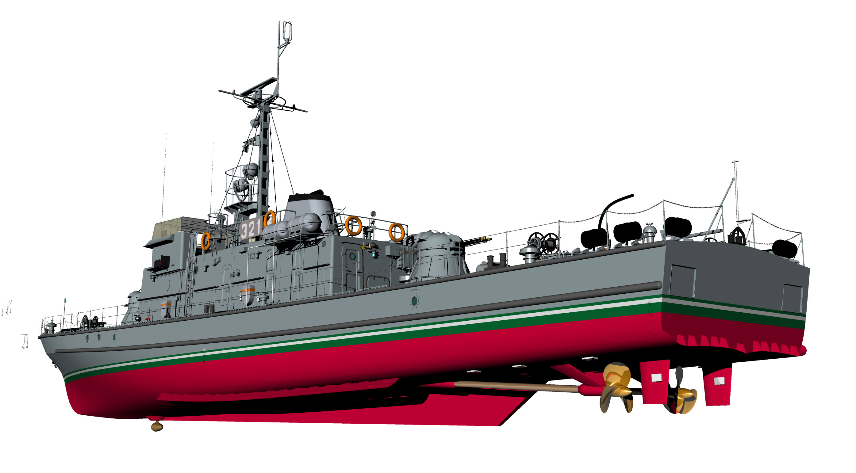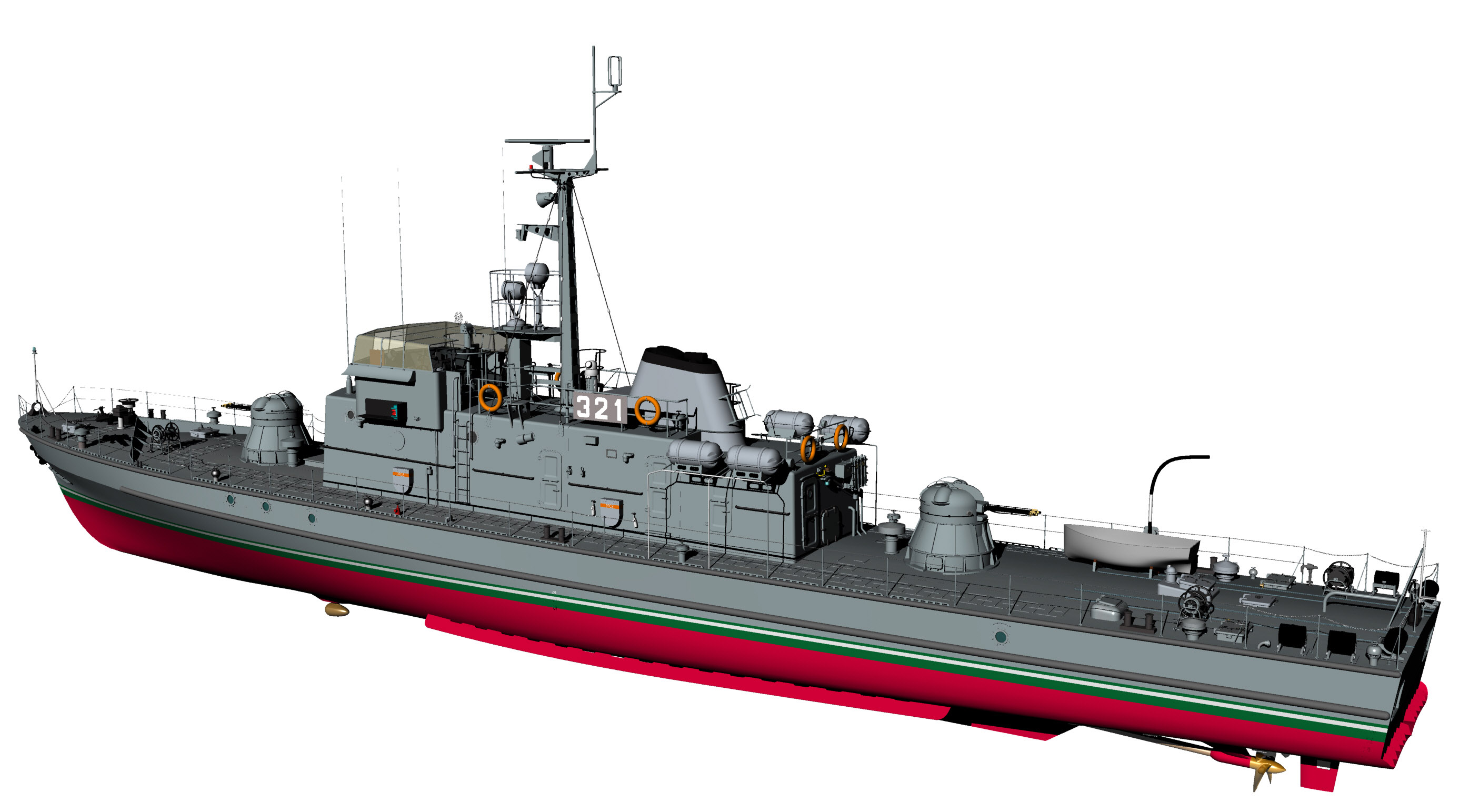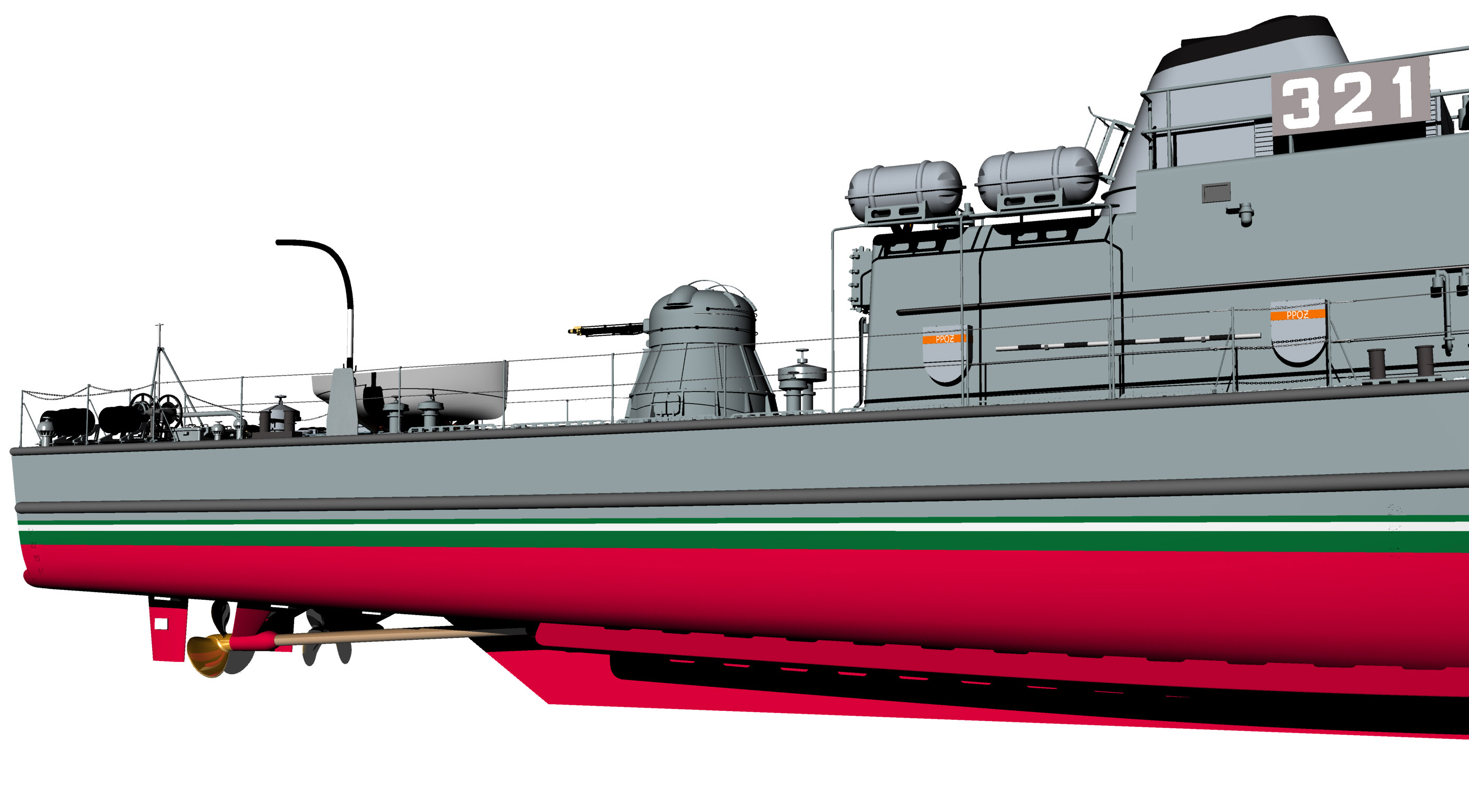 Kilka obrazków ORP Fala. Model 3D jak zwykle "prawie gotowy" do wodowania. Dopracowania wymagają detale na maszcie.