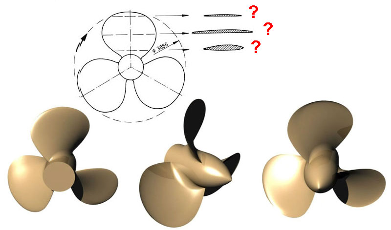 A teraz śruba. Jakbyś nie wiem jak się spierał, to jest ta sama śruba, obracana o 180 stopni. Malunek na górze przedstawia śruby z Anatomii. Jestem ciekaw, jak Takao mógł płynąć 35,5 węzłów mając proste płaty śrub. Pewnie tłuk wodę jak mikser śmietanę na szarlotkę a dodatkowo miał napęd magnetohydrodynamiczny.