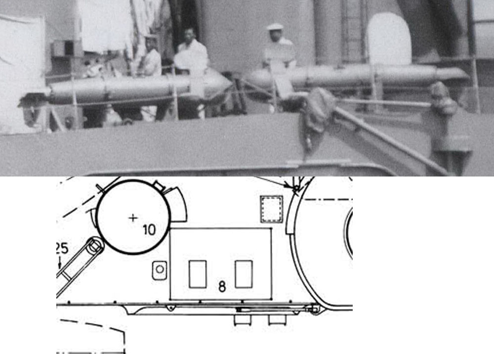 Mieści się ono na pokładzie śródokręcia, mimo że torpedy są poniżej tego pokładu.