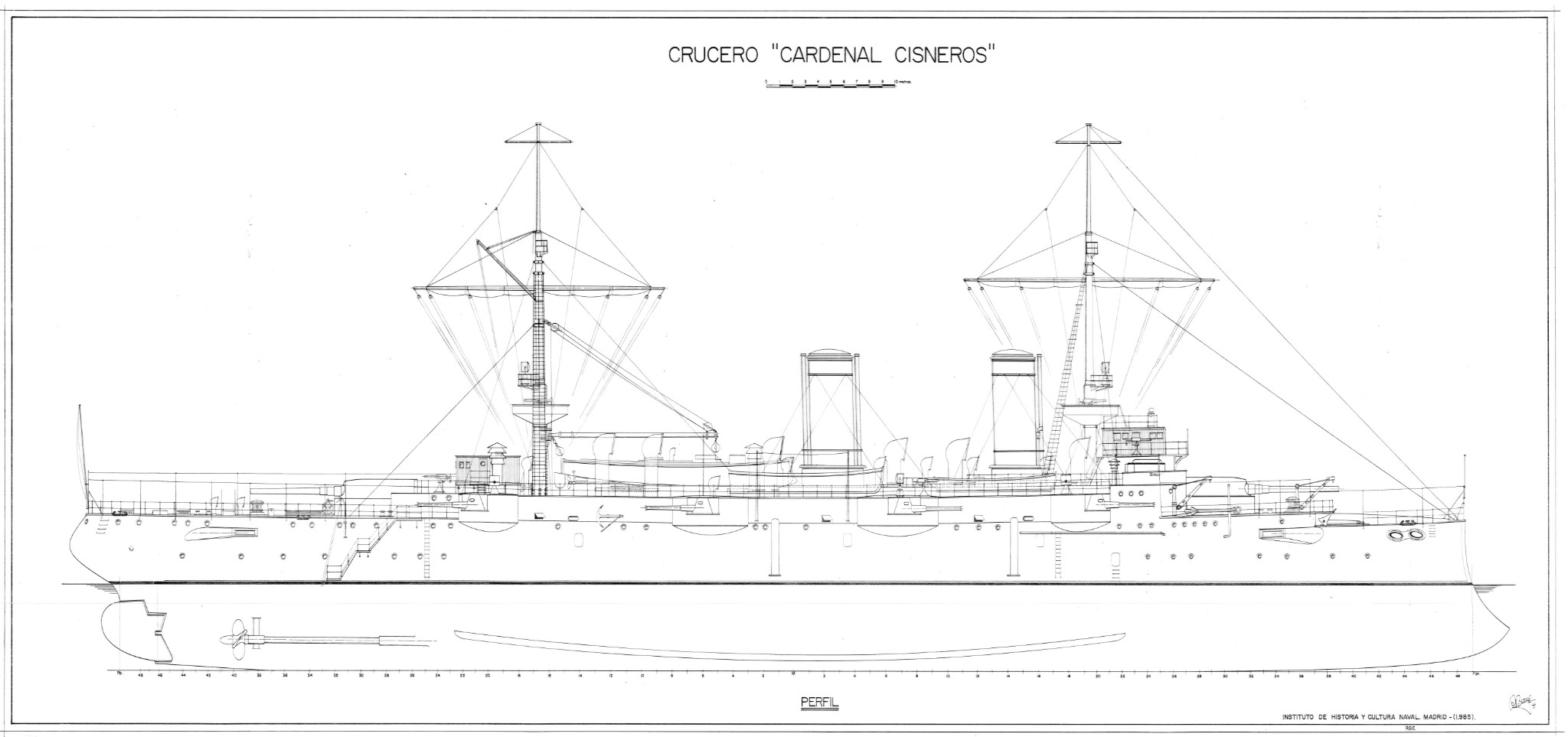 Hiszpańskie krążowniki pancerne typu Princesa de Asturias (wersja rozwojowa zatopionych pod Santiago okrętów typu Infanta Maria Teresa). Zbudowano trzy jednostki: Princesa de Asturias, Cardenal Cisneros i Cataluna, zwodowane kolejno w latach 1896, 1897 i 1900, w służbie 1903-1904. Wyporność 6890 ton, prędkość 20 węzłów. Wymiary: 106 x 18,6 x 7,6. Uzbrojenie: 2x240/40BL, 8x140/45 QF, kilkanaście małych, 5 wt. Pancerz burtowy 300-150mm, barbeta 200mm, wieża 100mm. Cisneros rozbił się w październiku 1905 roku, pozostałe dwa okręty wycofane zostały w drugiej połowie lat 20.