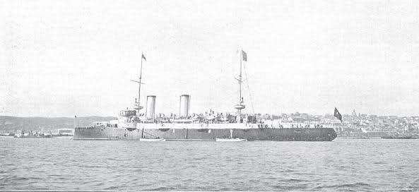 Włoskie krążowniki pancerne typu Giuseppe Garibaldi. Stanowiły rozwinięcie prezentowanych tu już wcześniej krążowników pancernych Vettor Pisani i Carlo Alberto. Wcześniej już prezentowałem zdjęcia 4 argentyńskich krążowników typu Garibaldi i hiszpańskiego Cristobal Colon - wszystkie były w zasadzie tego samego typu. Krążowniki typu Garibaldi były wyjątkowo udane i stanowiły swego rodzaju włoski "hit eksportowy". Dla siebie Włosi wybudowali trzy takie jednostki: Giuseppe Garibaldi, Varese i Francesco Ferrucio. Zwodowane w latach 1899 i 1902 (ostatni), w służbie 1901 i 1905 (Ferrucio). Wyporność ok. 7235 ton, prędkość 20 węzłów. Wymiary: 104,9 x 18,3 x 7,1 m. Opancerzenie: burty 150mm, wieże i barbety 150 mm. Uzbrojenie: 1x254/40 BL, 2x203/45 QF, 14x152/40 QF, 10x76/40 QF, kilka lekkich, 4 wt. Giuseppe Garibaldi został zatopiony w lipcu 1915 roku przez austro-węgierski okręt podwodny. Pozostałe zostały wycofane w latach 20.