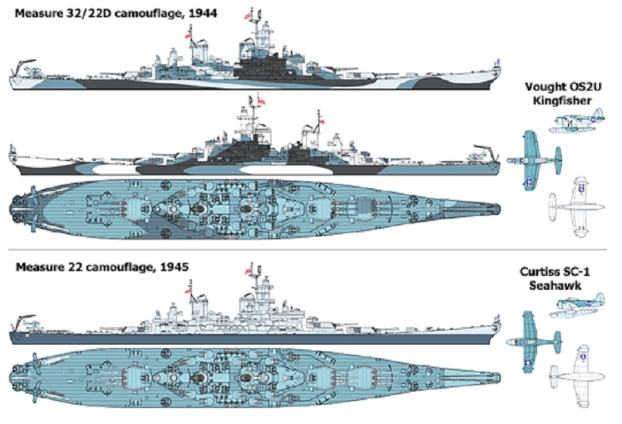 Jeżeli bardzo chcemy go mieć w kamuflażu - to najbardziej odpowiednim byłby kamuflaż dwukolorowy - tzw. "Admiralty Standard Scheme". Jesienią 1944 r. zastąpił on inne schematy kamuflażu (nie licząc wzorów specjalnych - np dla eskortowców). Sprowadzał się on do malowania szarą farbą (G45) nadbudówek i górnej części kadłuba, a nieco ciemniejszą, niebieską (B20) panelu w dolnej części kadłuba.