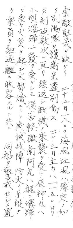 00:30 - 那珂敵浮上潜水艦の雷撃を受く舟首をすれすれにかわり命中せず