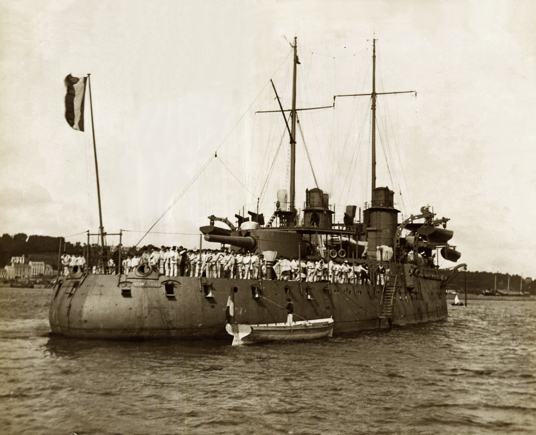 - Tu już po przebudowie polegającej na demontażu środkowej armaty 370 mm wraz z barbetą i ustawieniu na tym miejscu kazamaty z 4 armatami 164 mm