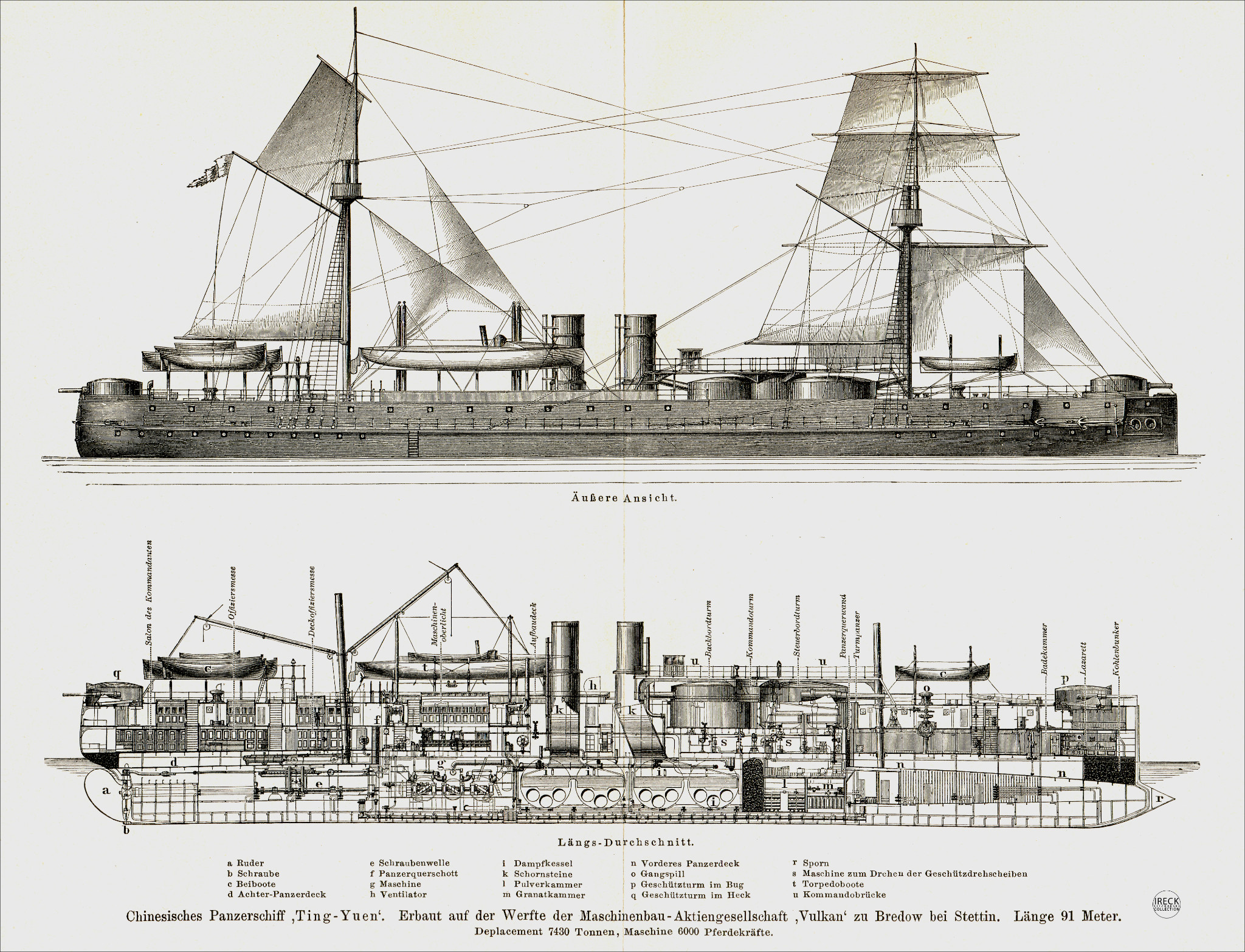 Skoro mowa o pancernikach cytadelowych, to teraz okręty chińskie: Ting Yuan i Chen Yuan.