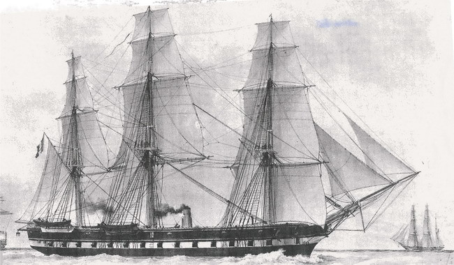 Brytyjska fregata Topaze (z końca lat 50 XIX wieku).