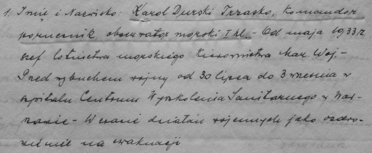 “..... In 1995 the Naval Aviation Brigade in Gdynia has been given the name of the Polish Naval Aviation co-founder, Commander Karol Trzaska – Durski.”