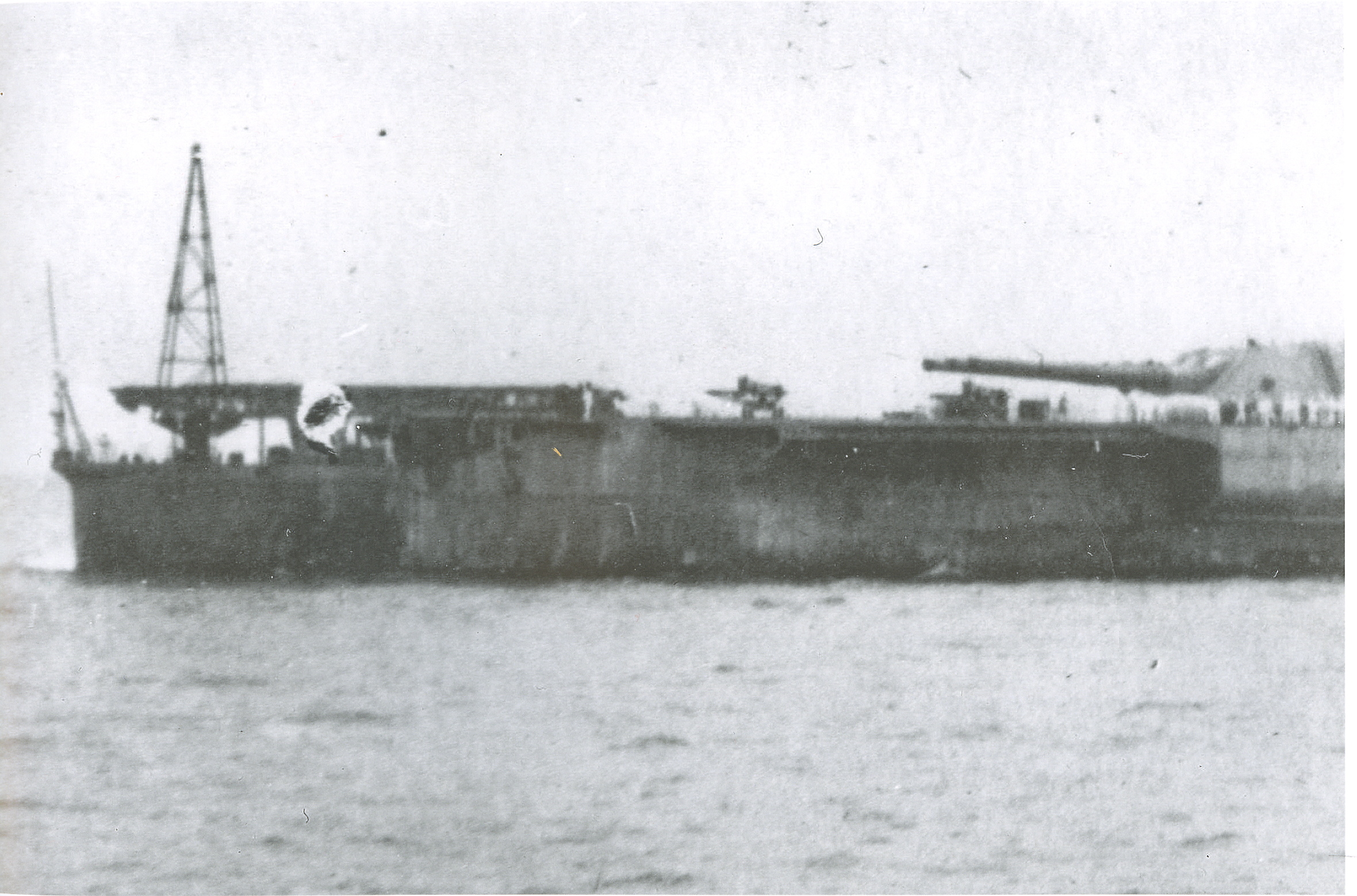 Tutaj fotka w oryginale... ... i obrócona o 180 stopni. Całkiem możliwe, że w momencie uderzenia o dno, burty po prostu spęczniały i jednocześnie ich wysokość zmalała. Stąd byłaby też pogięta stewa rufowa, ponieważ masa kadłuba i siła uderzenia przekroczyły wytrzymałość konstrukcji tej części kadłuba.