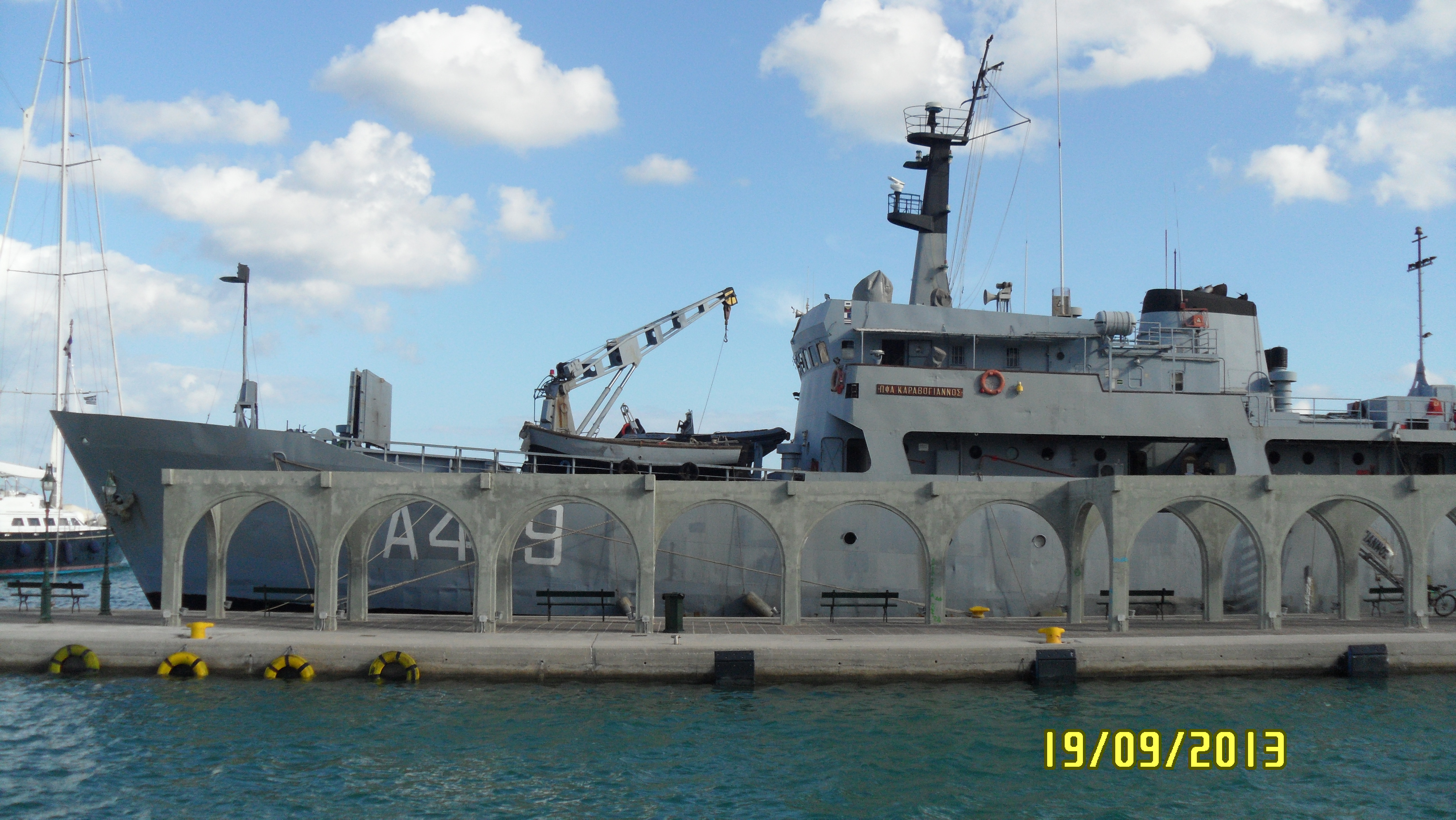 I żeby zmienić temat dyskusji, dorzucę ubiegłoroczne zdjęcie z greckiego portu Preveza. Ten okręt stacjonował tam przez całe lato 2012 i zwykle w nocy wychodził na patrole.