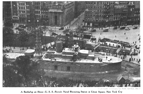 W Nowym Yorku na Union Square 30.maja 1917 r, a wiec zaledwie 7 tygodni po wypowiedzeniu wojny przez Ameryke pojawil sie USS Recruit.