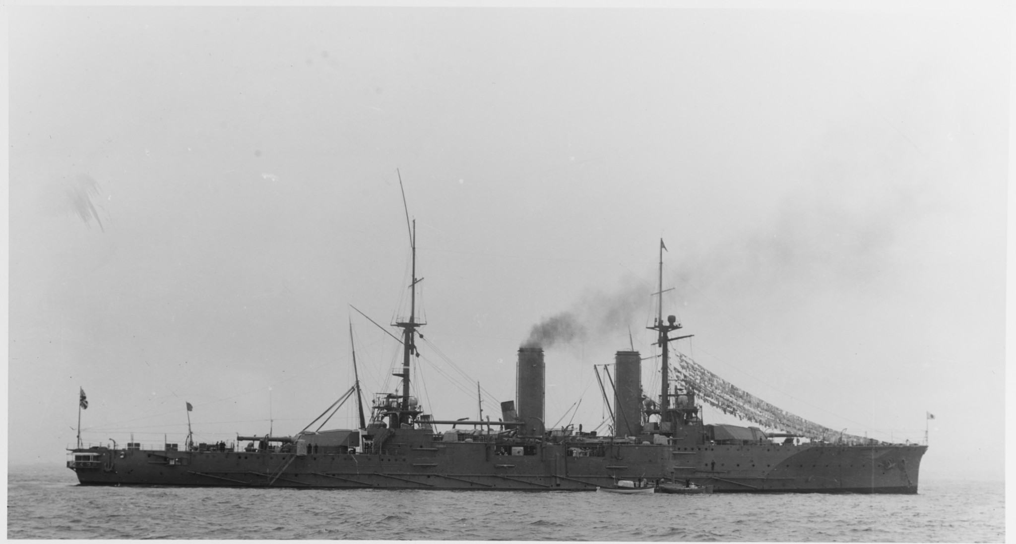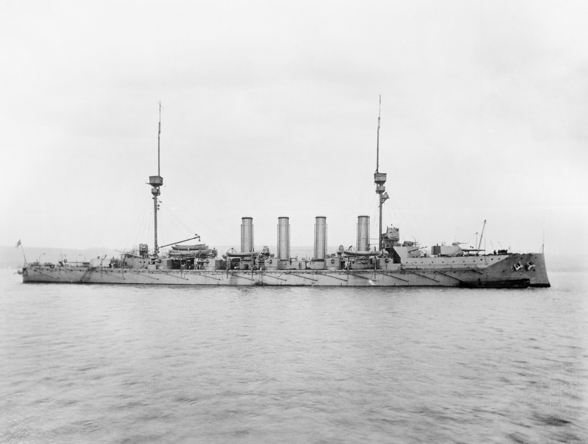 A tu kolejny krążownik pancerny - siostrzana jednostka Pisy i Amalfi, czyli grecki Georgios Averof. Zwodowany w 1910 roku, w służbie 1911. Wyporność 9960 ton, prędkość 22,5 węzła. Wymiary: 129,8 x 21 x 7,5 m. Uzbrojenie: 4x234/45 BL, 8x190/45 QF, 16x76/40 QF, kilka małych, 3 wt. Pancerz burtowy 200-80mm, wieże art. głównej 140mm, barbety 190mm, wieże art. średniej 175mm.