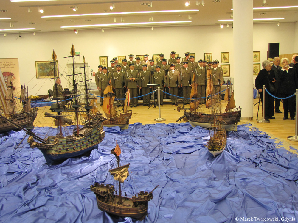 - Sala recepcyjna z czasową wystawą modeli okrętów (I piętro) - tutaj odbył się wernisaż, na którym zespół śpiewaczy WP zaprezentował wiązankę pieśni ("My, pierwsza Brygada", "Rozszumiały się wierzby", "Ułani, ułani", itp.)
