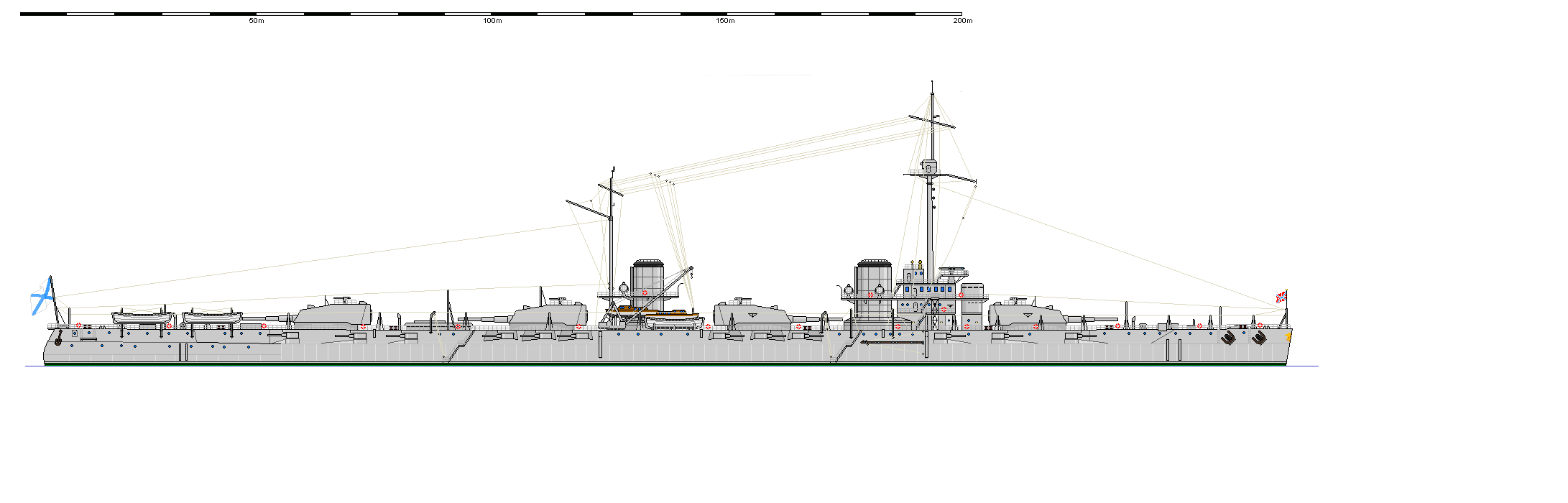 To mój podstawowy zarzut wobec tych projektów. Te wieże w superpozycji i relatywnie bardzo gruby pokład pancerny, dawałyby takie momenty bezwładności że całość musiałaby się przepotwornie kołysać o ile w ogóle była w stanie przy jakiejś większej niż mała fali. Żaden w historii okręt o tej wyporności nie miał takiego rozkładu mas. Swoją drogą zaczynam rozumieć skąd ta gródź torpedowa. Podejrzewam że bez niej nawet stateczność początkowa byłaby do kitu :wink: