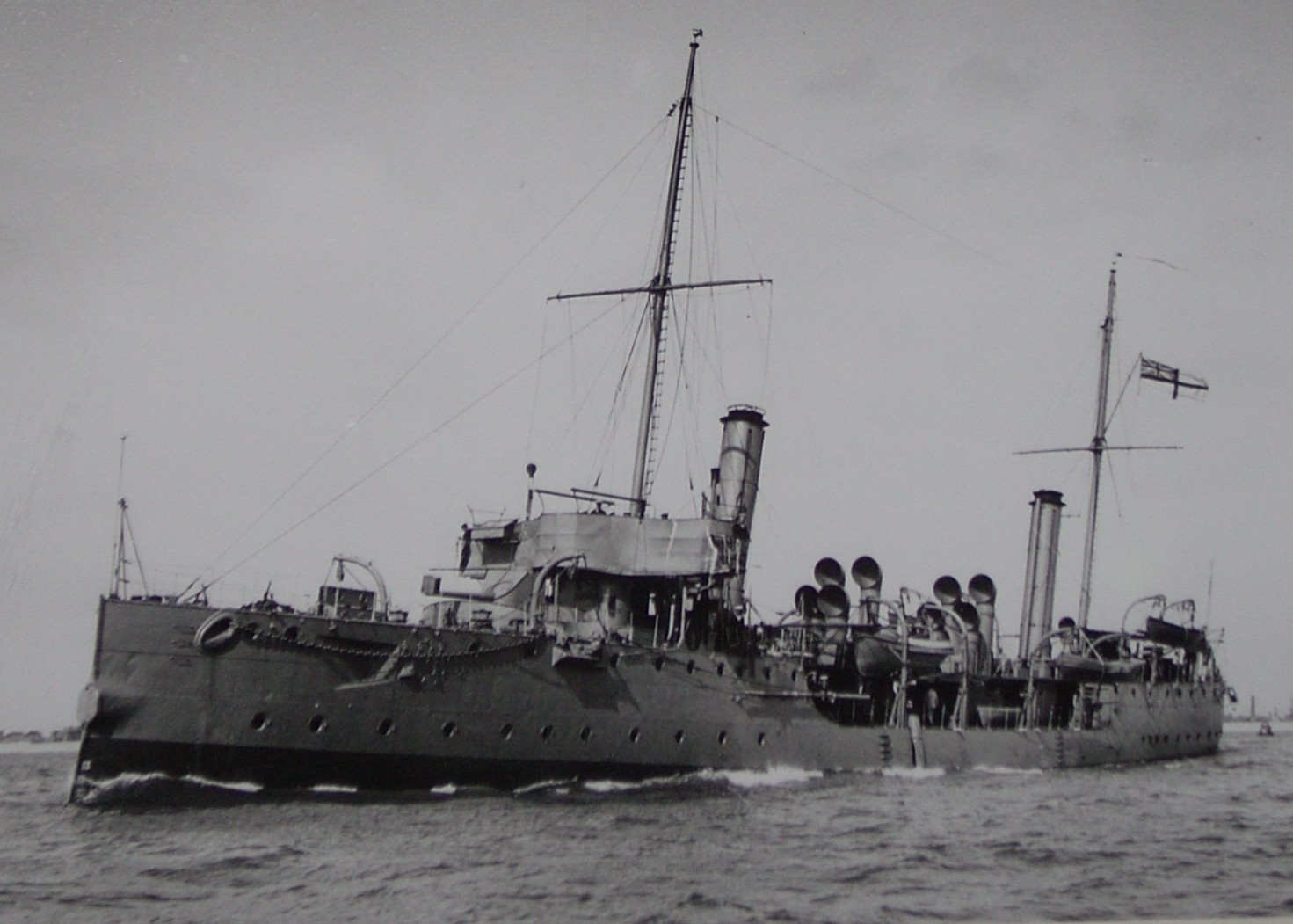 W zasadzie, to zdjęcie tej jednostki powinienem zamieścić gdzieś na początku - niemiecki Zieten. Był to w zasadzie okręt eksperymentalny, który jako jednostka torpedowa nie okazał się specjalnie udany i służył później jaki jednostka pomocnicza, awizo a w końcu patrolowiec. Zwodowany w 1876 roku (w służbie też w tym samym roku). Wyporność ok. 1000 ton, prędkość 16 węzłów. Wymiary: 75,3 x 8,6x 4,6 m. Początkowo uzbrojony był tylko w 2 wt, później dodano mu lekkie działka. Jako patrolowiec zdemontowano mu wt. Służył dość długo, bo w tej ostateniej roli (okręt ochrony rybołówstwa) doczekał do I wojny.
