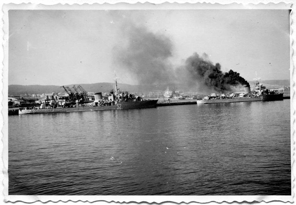 Nie jestem znawcą tematyki poruszanej na tym forum, ale w trakcie przeglądania rodzinnych fotografii znalazłem zdjęcie, które być może komuś się spodoba. Moim zdaniem (mogę się mylić) na zdjęciu są stojące przy nabrzeżu ORP Burza i ORP Błyskawica. Mój teść w połowie lat 50-tych służył na okręcie "Zetempowiec" i być może to z jego pokładu wykonano fotografię. Jej wymiary to 9x6 cm, więc nie jest zbyt dobrej jakości. Nie wiem, gdzie to zdjęcie wykonano.
