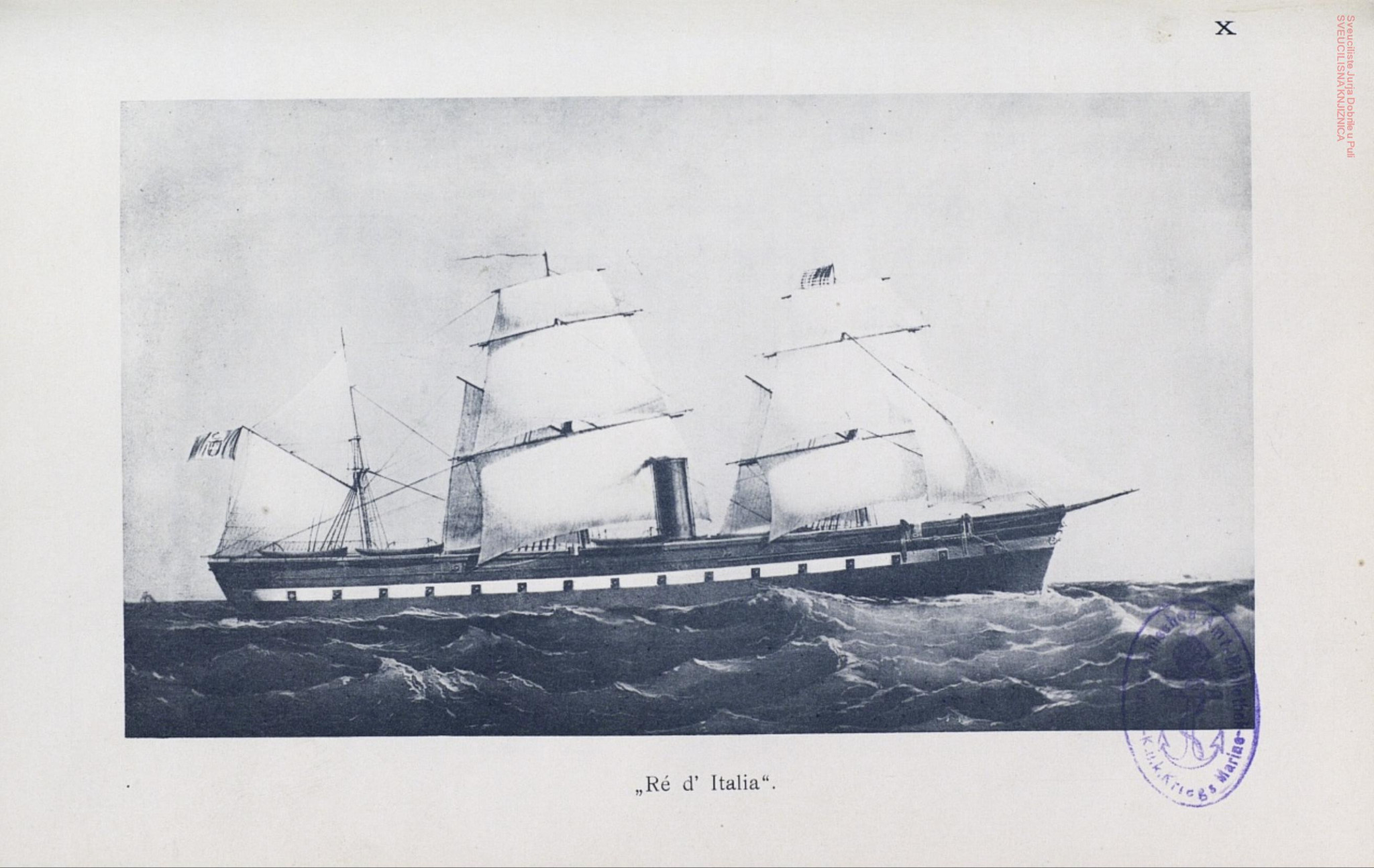 Włoskie pancerniki Regina Maria Pia (wszystkie uczestniczyły w bitwie pod Lissą 1866).