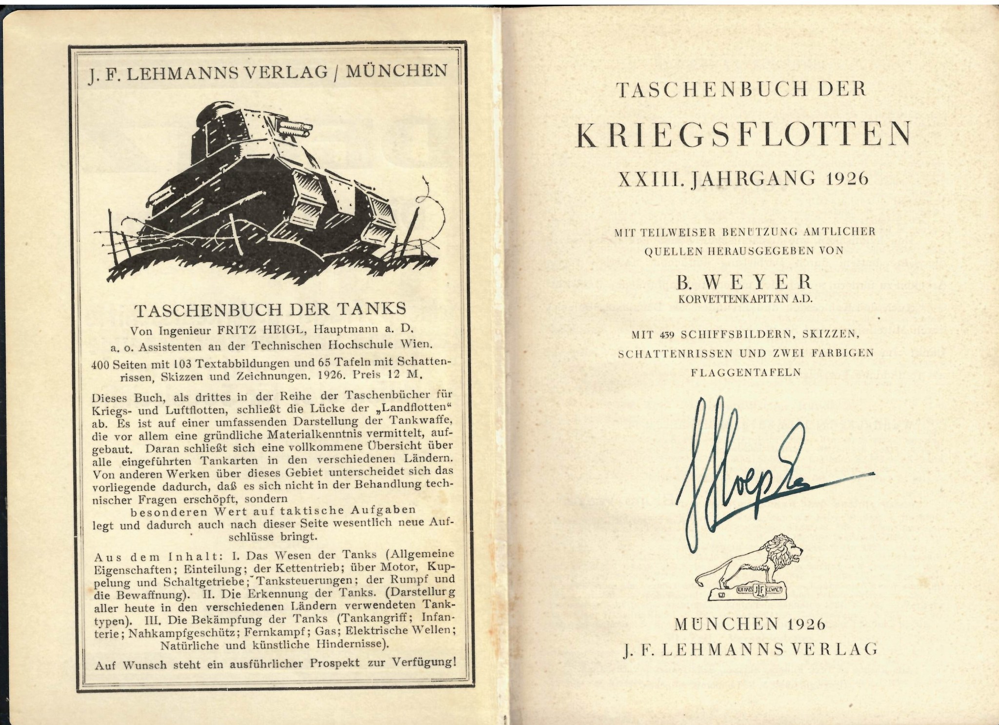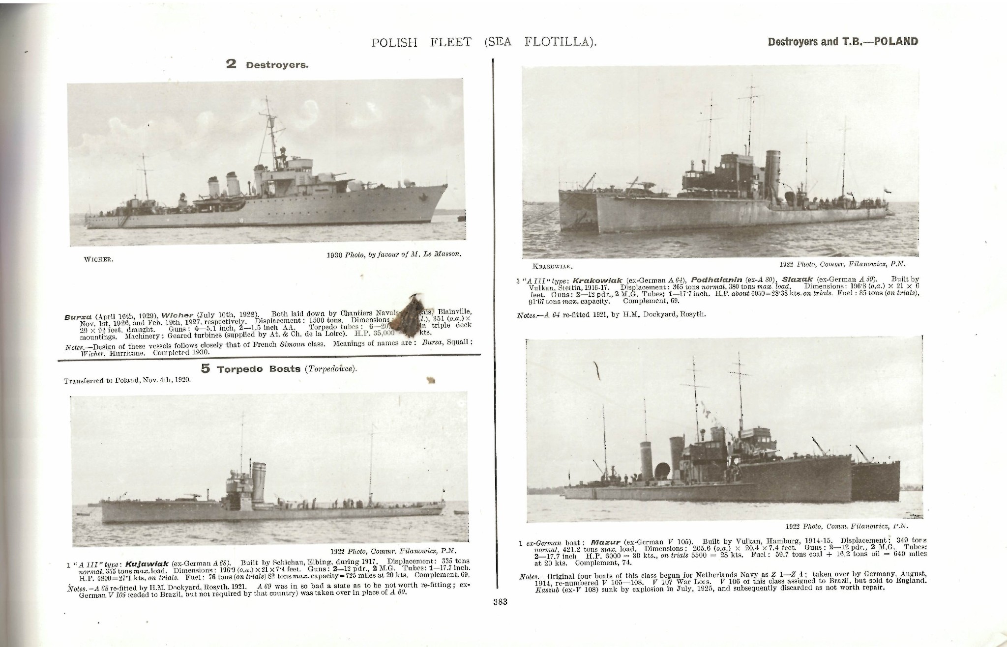 Zdjęcia i sylwetki okrętów (z rocznika 1924) dostarczył kapitan/kmdr ppor. Władysław Filanowicz, który był kierownikiem Sekcji Informacji DSM, a później Samodzielnego Referatu Planów i Ewidencji Marynarek Obcych KMW. Komórki te zajmowały się m.in. gromadzeniem danych wywiadowczych.